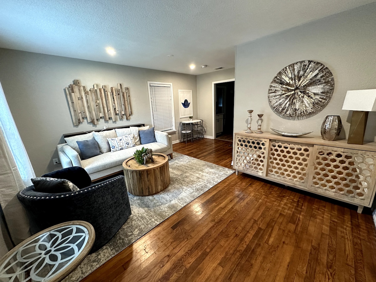 Dallas retreat designed to provide a unique and peaceful way to experience this city. Gorgeous, quiet and private street & home. This 2-bedroom 2 bath house includes an elegant living room & dining. TV room with a 77-inch OLED Sony smart TV. Outside deck includes a two person SAUNA. All bedrooms with curtains/Roman Shades for a perfect night’s sleep. Saatva Classic mattresses, Egyptian cotton linen. We want your stay to be unforgettable. Bishop Arts district and golf just 3 min away.