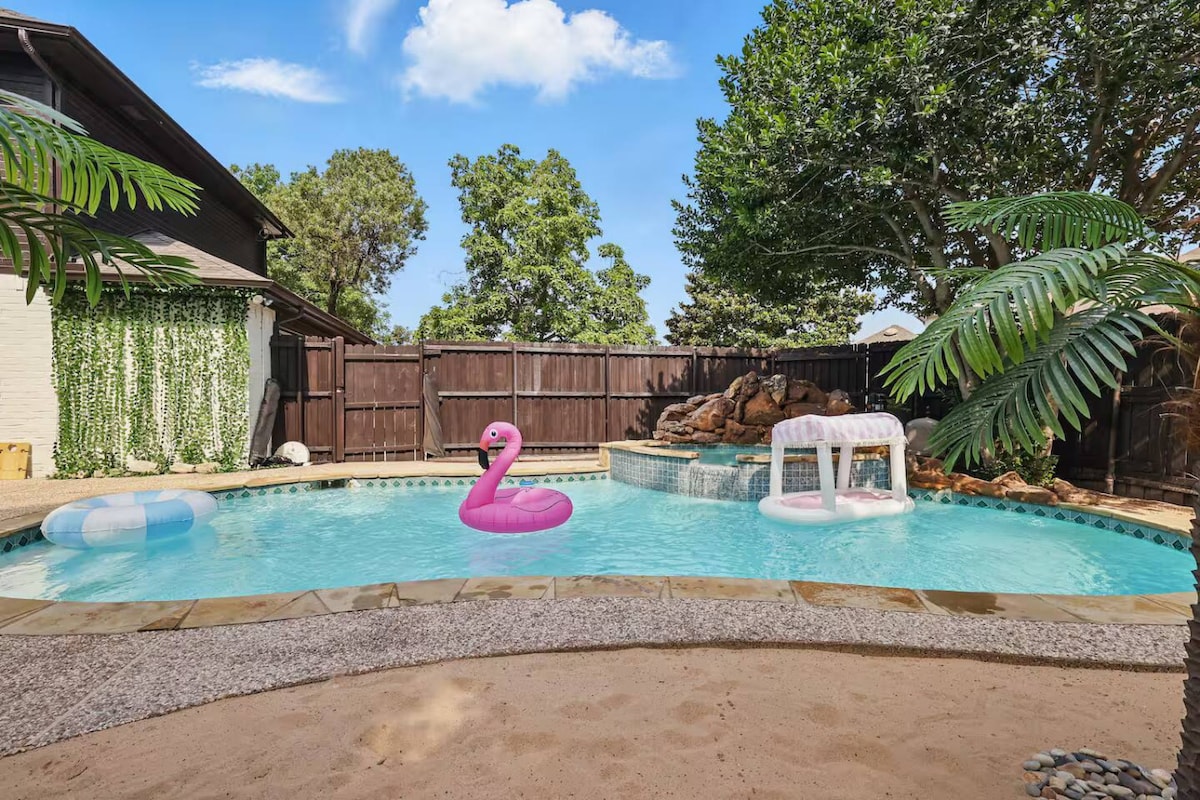 Welcome to our luxurious family-friendly Airbnb! Our home has all the amenities you need for a comfortable and enjoyable getaway with your loved ones. Watch movies and TV shows on the huge 85-inch screen, relax in the hot tub, or play in the grassy backyard. We even have a cozy reading nook for quiet moments. Located near Legacy West, The Star, RoughRiders Baseball, and many shopping malls, you'll never run out of things to do. Book your stay today and start planning the ultimate vacation!