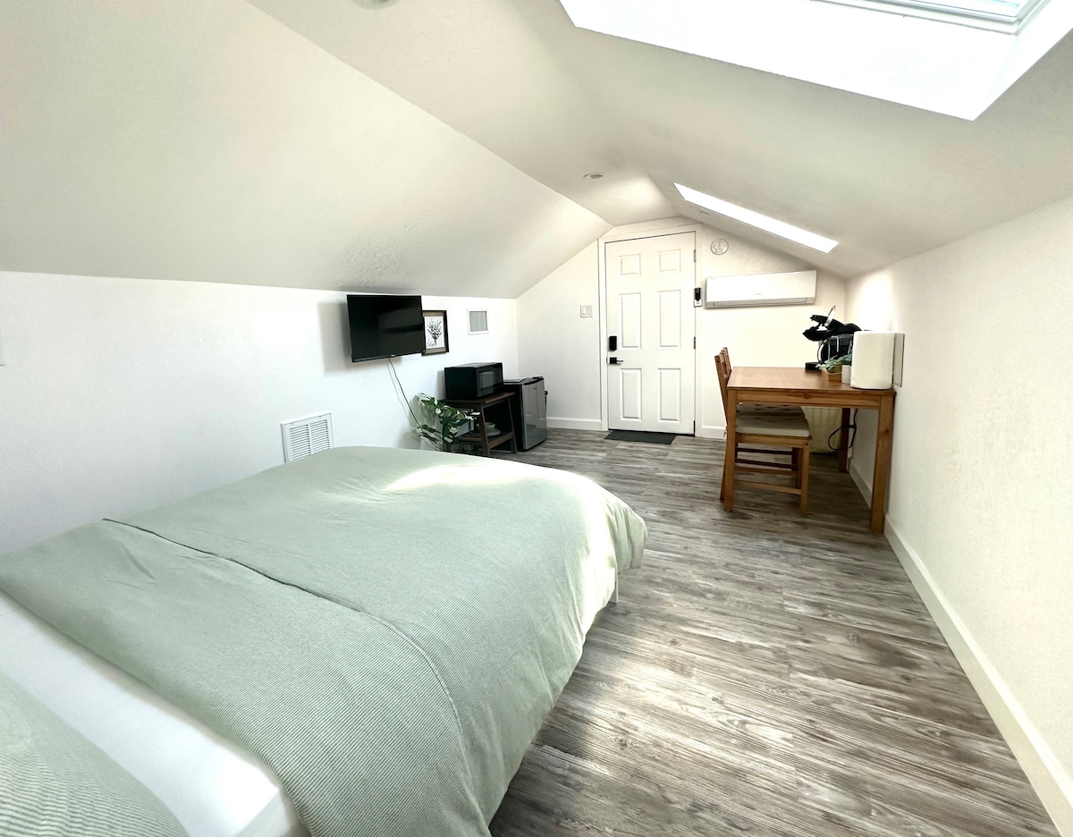 It's very hard to find this huge and private space. The suite is over 850sft. More than half acre backyard, basketball court, bbq. Gym on the first floor. This suite is fully furnished with a comfortable kingbed (newly added soft mattress topper). Livingroom has table and chairs, microwave and instant pot for tea or coffee. And a large full size refrigerator downstairs. Private full bathroom inside of the suite! You will enjoy this one of the kind privacy stay! Thank you for your business!