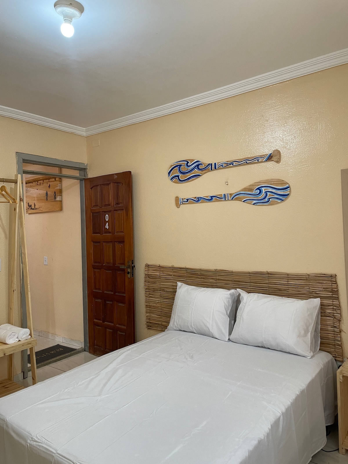 Os quartos oferecem Smart TV, ar-condicionado, chuveiro quente e banheiro privativo, garantindo o conforto ideal para sua estadia.