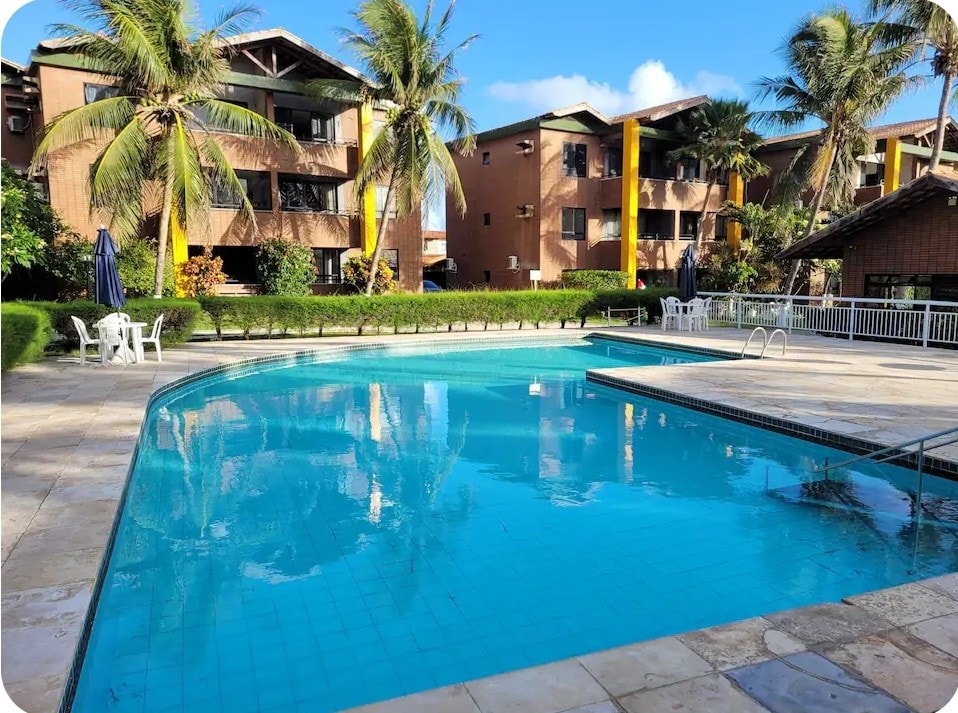 Apartamento em frente a uma famosa praia de Fortaleza com todo requinte de um resort, ao lado do Hotel Vila Galé e no caminho do beach park. Tem 2 suítes, com camas box e ar condicionado. Cozinha completa. Sala com sofá e uma mesa de jantar com 4 lugares. Varanda com armador de rede e uma mesa, uma vista maravilhosa da praia. Condomínio com segurança 24 horas, recepção, área de lazer completa, 4 piscinas, sendo uma com raia.