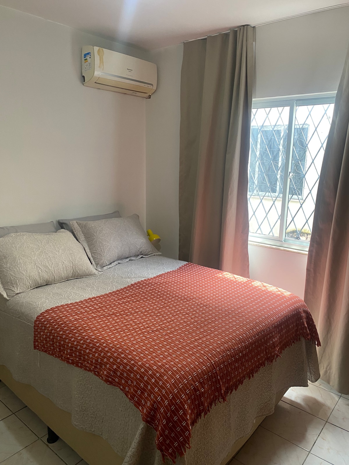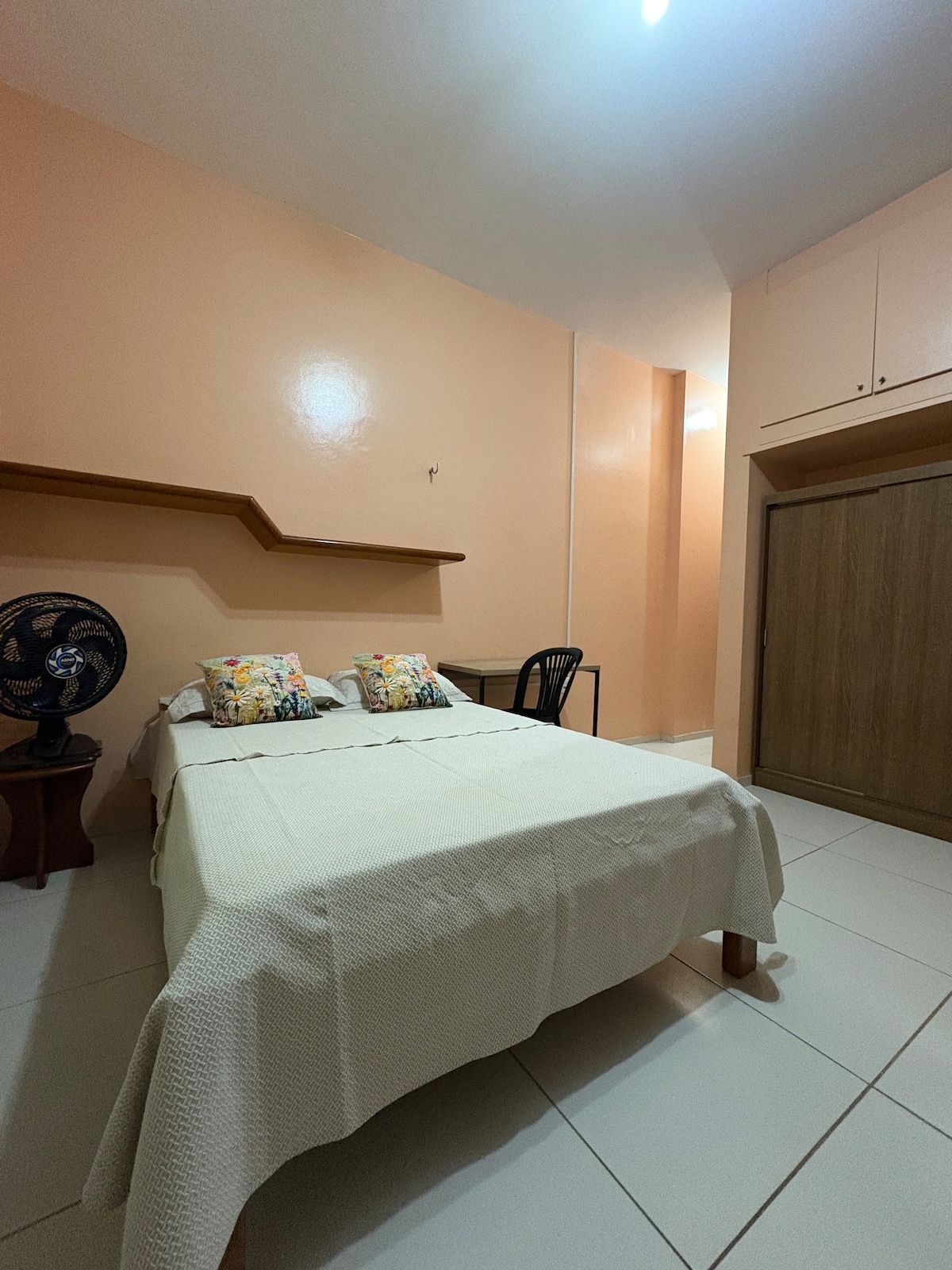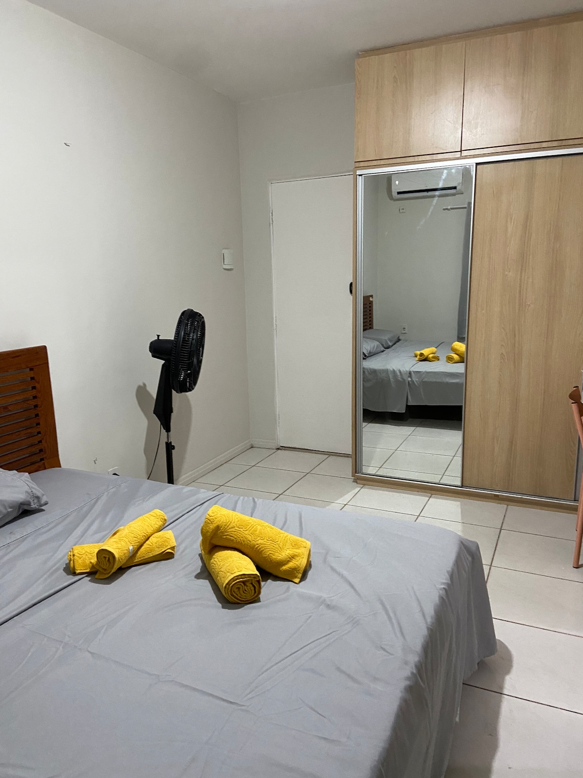 Nossa suíte é simples, limpa e ampla, ideal para quem busca um lugar aconchegante e tranquilo para descansar e aproveitar a cidade. No primeiro andar do prédio, com acesso por escadas, nosso espaço é um ambiente familiar com o plus de ser muito bem localizado e com fácil acesso a restaurantes e supermercados. Perto do centro da cidade, da Beira Mar e do Mercado Central de Fortaleza. A suíte possui ar-condicionado e conta com uma cozinha em comum com os demais hóspedes.