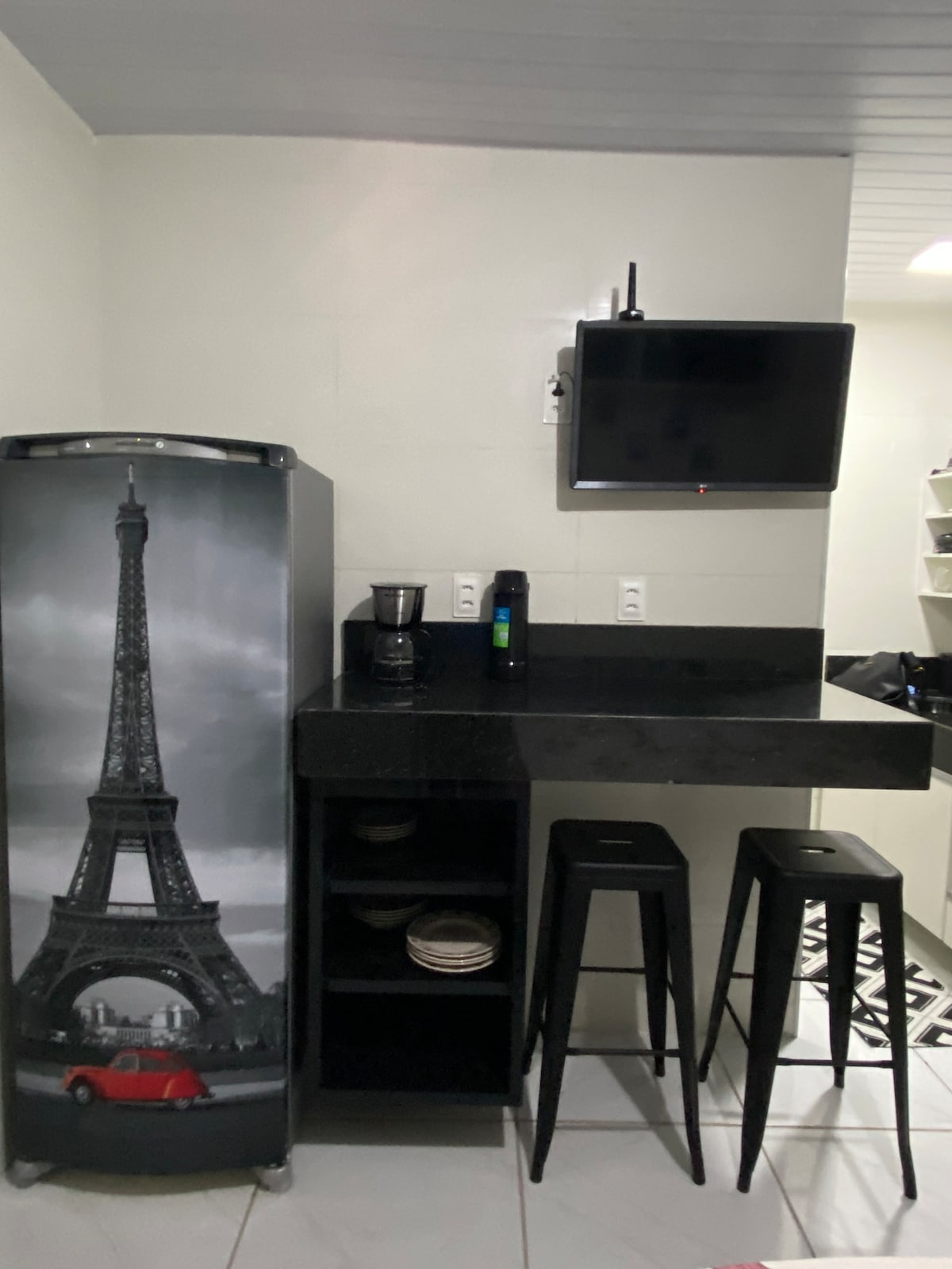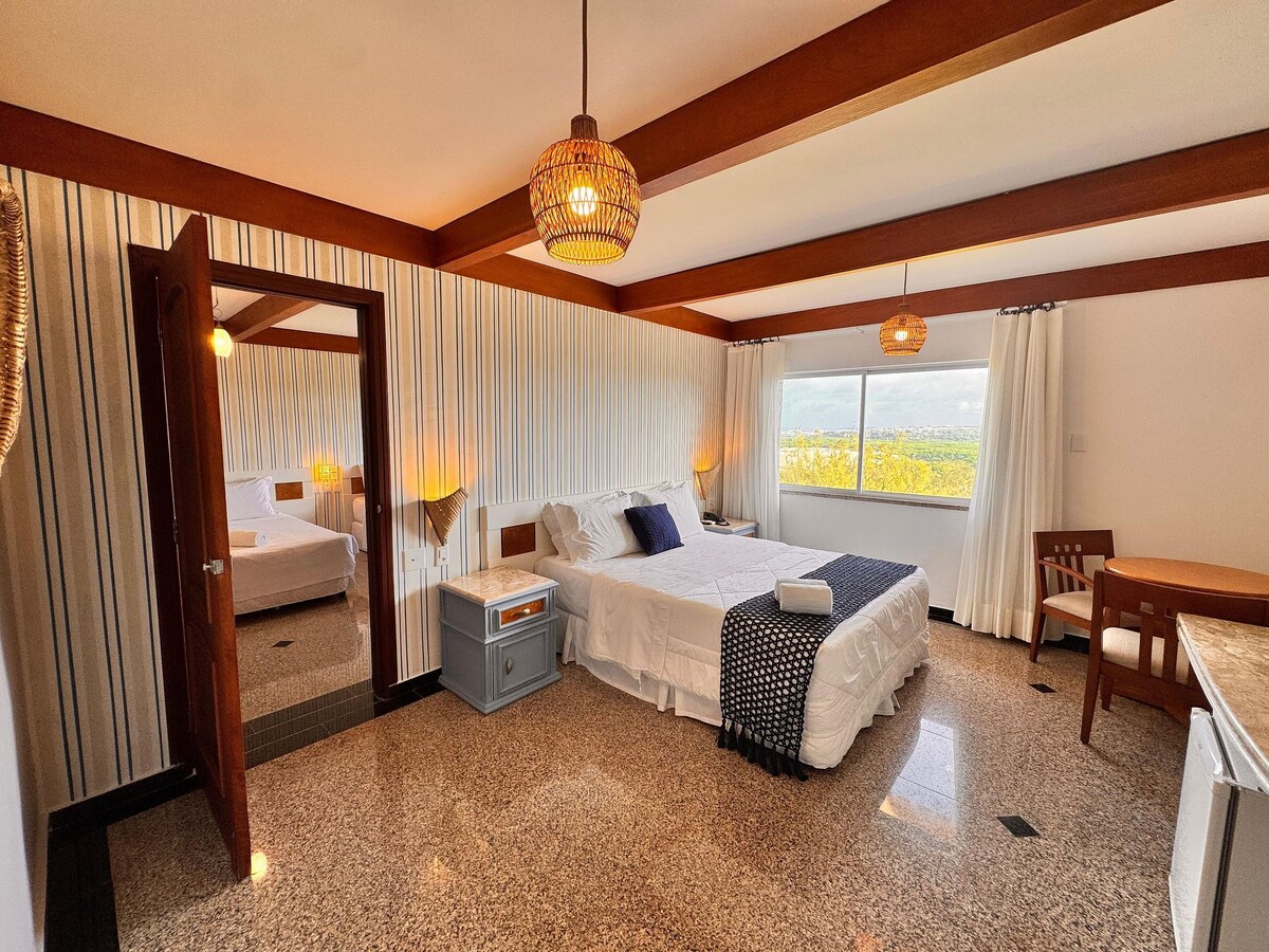 You are booking a private suite with a shared kitchenette. The suite features air conditioning, gas shower, minibar, and beach view, making it ideal for both short and long stays. The location is 5 km from Beach Park, 19 minutes from Iguatemi Bosque Mall, 13 km from the airport, and close to the main beaches of Fortaleza and the metropolitan area.