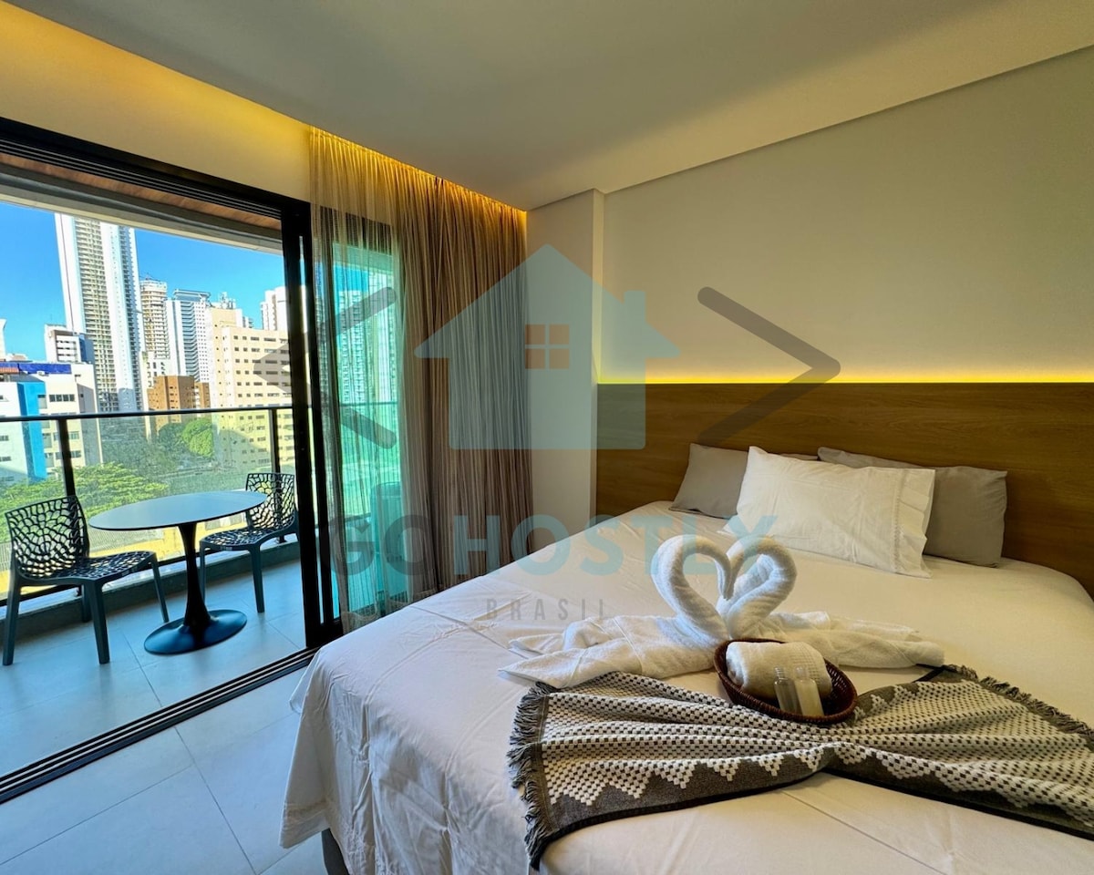 Apartamento tipo studio, super aconchegante, confortável e moderno. Conta com um quarto com cama de casal e 2 redes na sala e sacada. Próximo a praia, supermercados, farmacias, restaurantes, lojas e centro cultural. SUPER ventilado, com rede na sacada e belíssima vista pro mar. Perfeito pra quem busca praticidade, conforto e segurança!