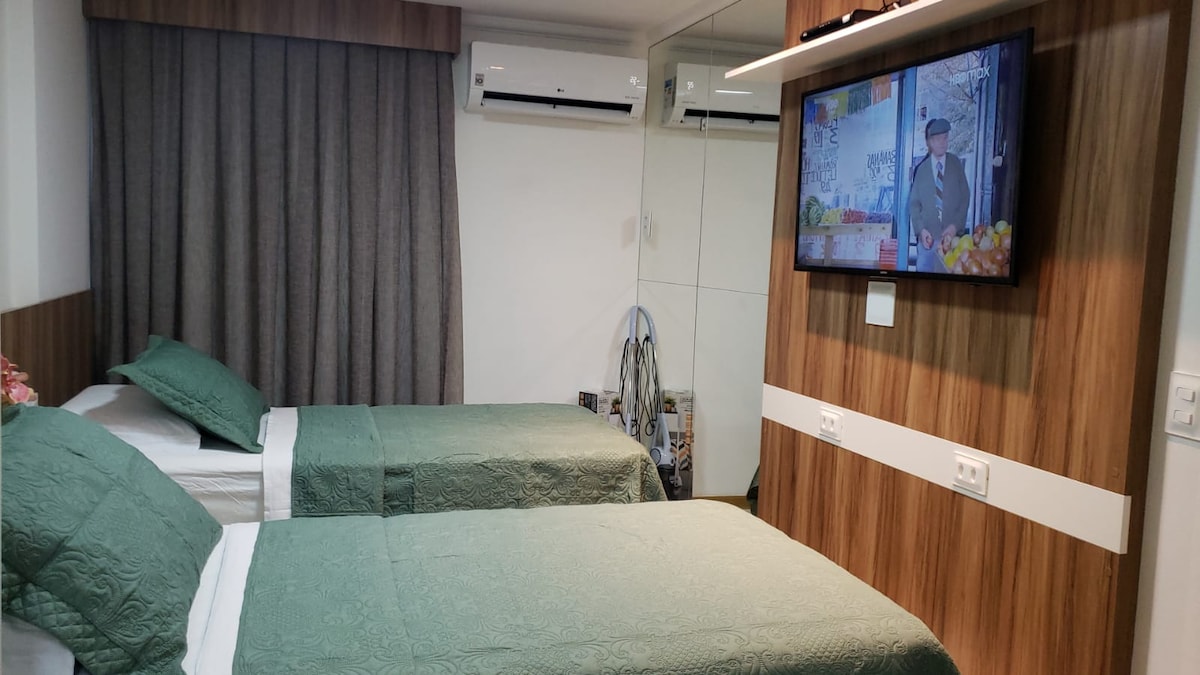 Apartamento mobiliado para temporada para quem deseja praticidade e conforto de casa. Fica entre duas avenidas que permitem o fácil acesso aos transportes públicos. O apartamento é totalmente individual para quem gosta de privacidade. Tem louça e kit de limpeza básica, acesso a Internet e TV. Cozinha (cooktop eletrico (1 boca), forno elétrico, frigobar, multiprocessador com liquidificador e sanduicheira). O apartamento não tem direito a estacionamento.