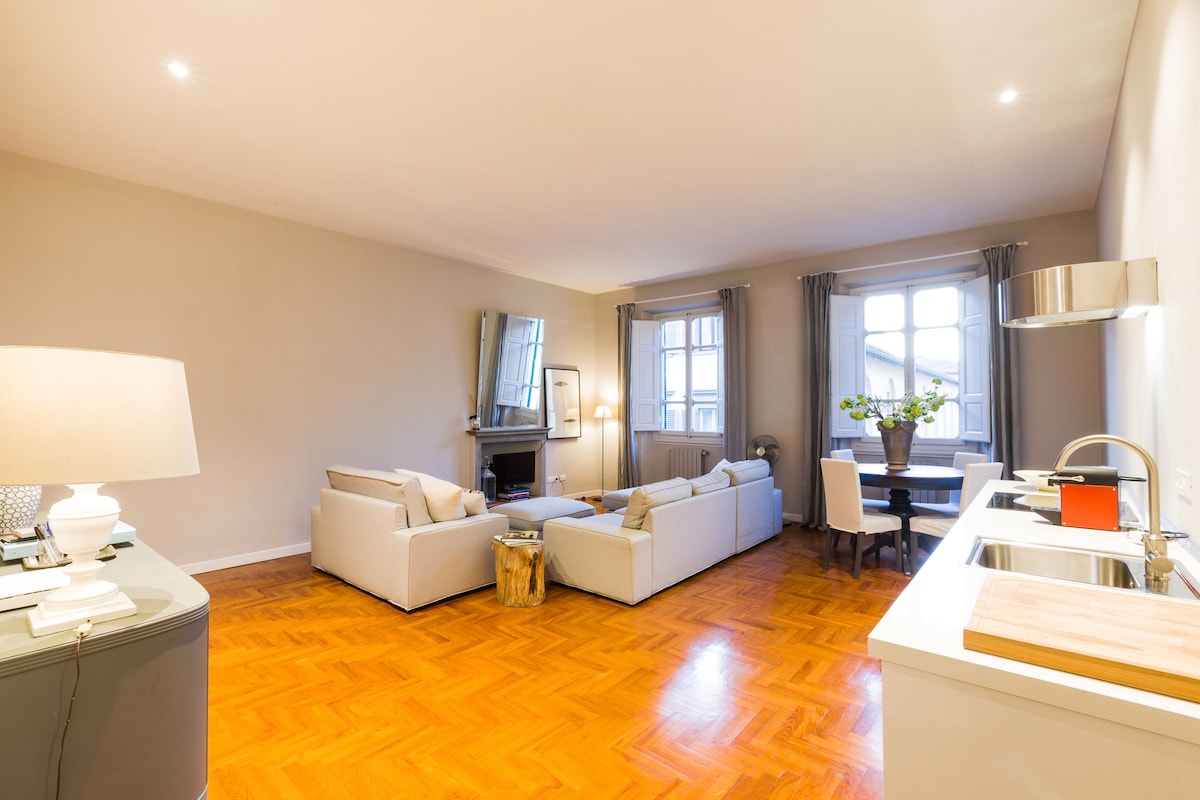 Grande Appartamento dallo stile contemporaneo in un bel palazzo con ascensore nel cuore di Firenze! Un appartamento luminoso, dotato di tutti i comforts con vista Duomo! Wifi veloce! L’appartamento è tutto quello che serve per passare una bellissima vacanza a Firenze: 2 ampie camere da letto con vista Duomo, 2 bagni con doccia, 1 bella cucina, un’ampia sala con divani, tavolo da pranzo e tv con Netflix. Lavatrice e asciugatrice! La miglior soluzione per tutti.. coppie e famiglie! Effetto wow!