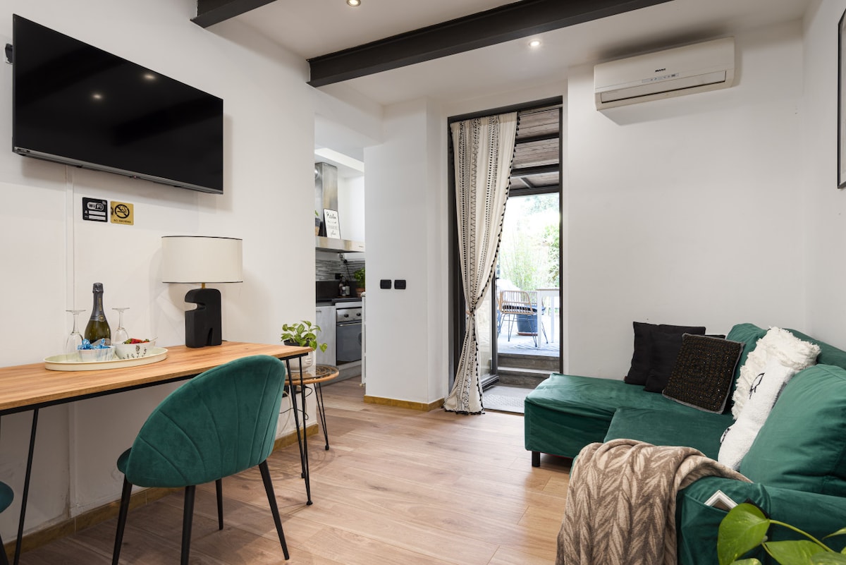 With a cozy and modern design, the apartment has a spacious living room with a comfortable sofabed and Smart TV. The fully equipped kitchen allows you to cook your own meals and enjoy them at the dining table. The highlight of the apartment is the private garden and Jacuzzi. Perfect for enjoying a glass of wine and unwinding under the stars. With its central location, you'll have easy access to popular tourist attractions. Book now and experience the best of city living for unorgettable memories