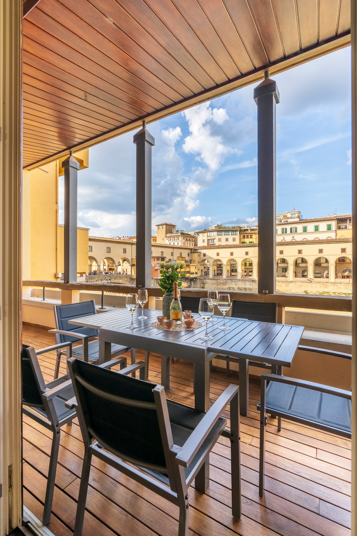 Make your stay unique and treat yourself to an experience that you will carry within you for a lifetime. Located in the heart of Florence, this magnificent apartment is the ideal solution for those looking for an exclusive and prestigious site to combine with a central location, which is perfect for easily visiting the main sites of interest, all reachable in less than 10 minutes by foot. The views are on Ponte Vecchio, and you can enjoy one of the most fascinating panoramas of the city.