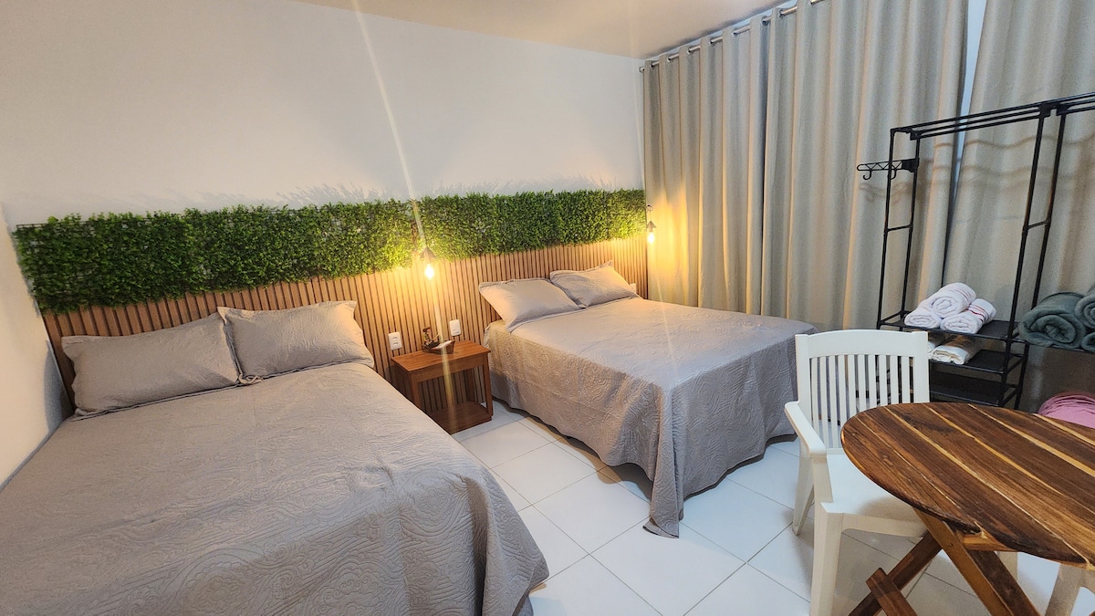 O lugar perfeito para quem quer viver o melhor de Pontal de Maceió (Fortim) sem precisar de carro! Nossa kitnet une o conforto de um espaço moderno com a localização mais estratégica da região. Localizada no centro da vila, você estará a poucos passos do polo gastronômico de Pontal, onde ficam os melhores restaurantes e a vida pulsante do vilarejo. O ESPAÇO: A kitnet foi pensada para oferecer funcionalidade e aconchego para casais ou viajantes solo: Localização Imbatível: 500 metros da 🌊
