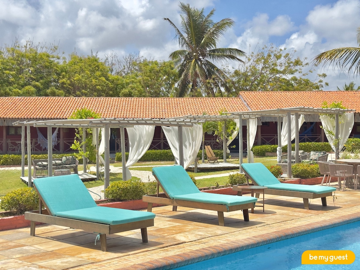 Imagine waking up to the sound of the ocean, stepping barefoot onto the pool deck, and watching the sunrise over the sea. Casa Carnaúba offers all that and more — beachfront, fully equipped, and the perfect place to relax in style. Casa Carnaúba is located on Canoé Jaguaribe Beach, in the municipality of Fortim, Ceará. This place is a slice of paradise on earth, right where the Jaguaribe River meets the sea.