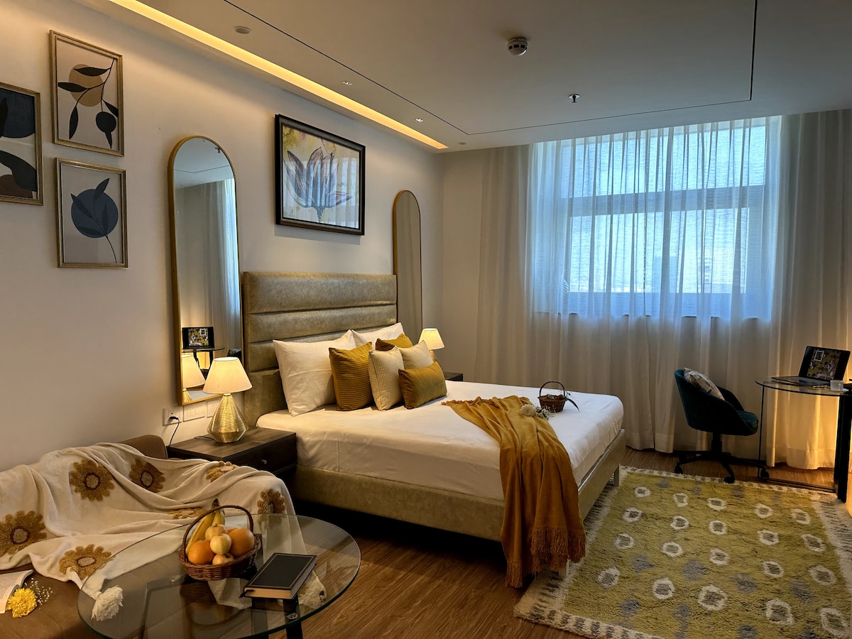 A Designer studio - your haven in humble neighborhood. With a spa-style bathroom, soft lighting, and elegant interiors, it’s perfect for couples, solo travelers, or business guests. Enjoy a plush bed, fast Wi-Fi, smart TV, and a sleek kitchenette. Whether you’re working remotely, creating content, or simply unwinding, this space offers boutique-style comfort with local charm—at a refreshingly affordable price. A hidden gem for those who value beauty and simplicity, in the heart of the city.