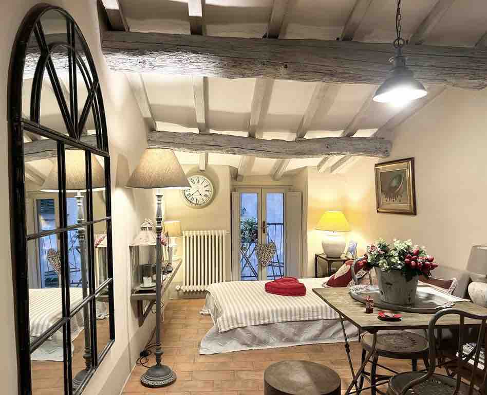 This apartment, named Baldelli, is located in Piazza della Repubblica and it’s a the third floor of an historic building without elevator. The apartment has a double bedroom, a living room with desk and a sofa, a bathroom with shower, a kitchen full equipped. From one side of the house you can see the city hall building and from the other one there is a great Val di Chiana view.