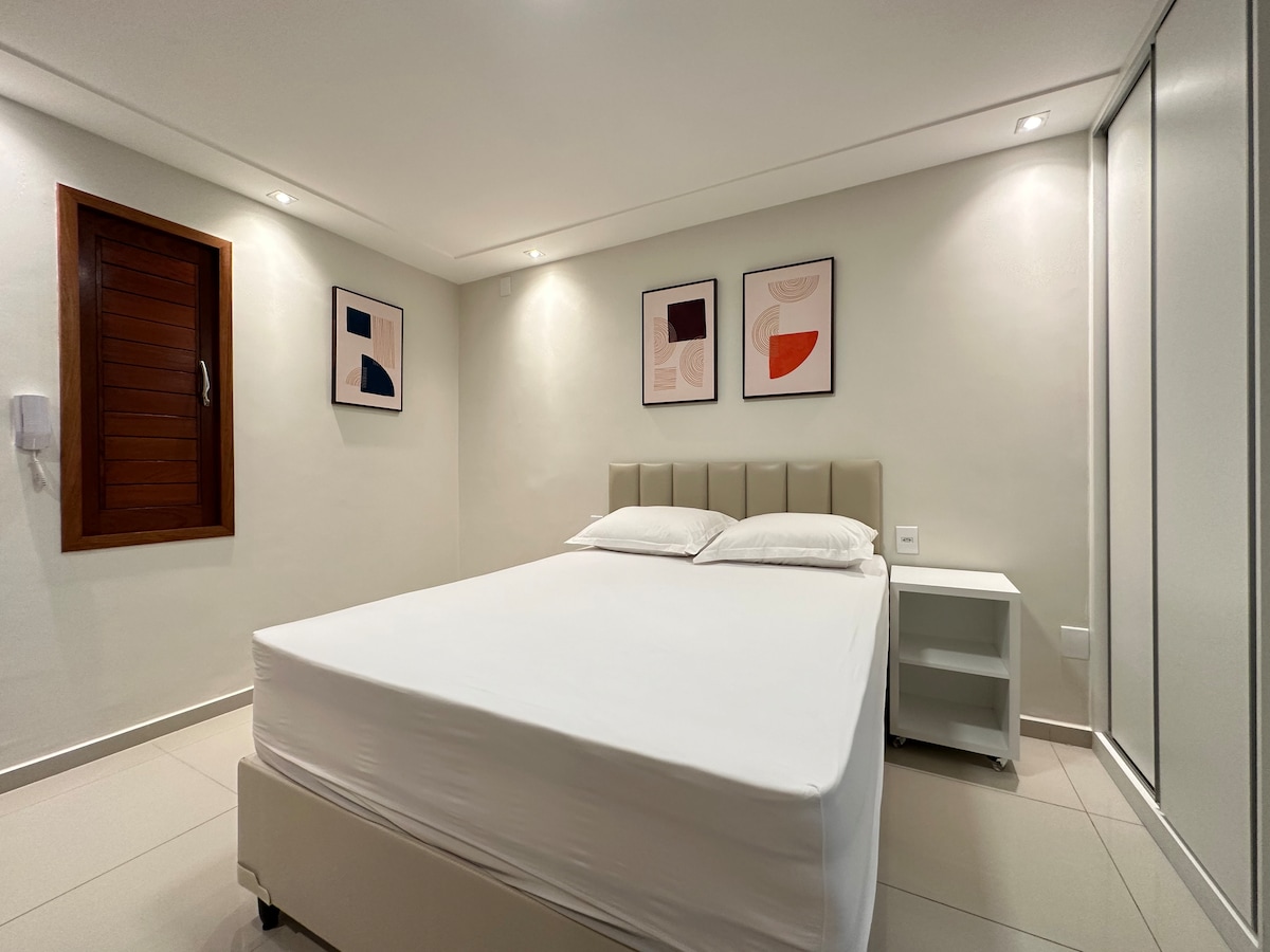 Apartamento de 50 m², com 1 quarto, sala, cozinha e varanda, de frente para o mar e para a famosa Praia de Ponta Negra. Trata-se de um flat extremamente novo, confortável e aconchegante, aparelhado por ar condicionado, Smartv de 50 polegadas com acesso à Youtube e Netflix, com TV à cabo e internet, além de contar com uma belíssima vista para o mar e morro do careca. A cozinha é equipada com louças, talheres e utensílios diversos, geladeira inox, cooktop, microondas, cafeteira e mesa de jantar.