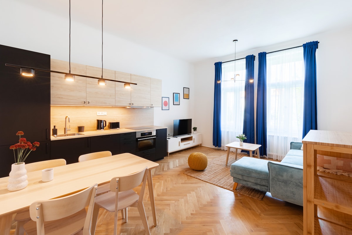 Apartment is located in a luxurious, fully reconstructed building with an elevator, and top-tier security, this spacious apartment is just a short walk from the historic City Centre. It comfortably accommodates up to 4 guests, featuring 1 Queen Sized Bed and a Double Sofa Bed. Tastefully furnished and equipped for both short and long-term stays, the apartment offers all modern comforts, including a Smart TV, high-speed WiFi, and a fully equipped kitchen.
