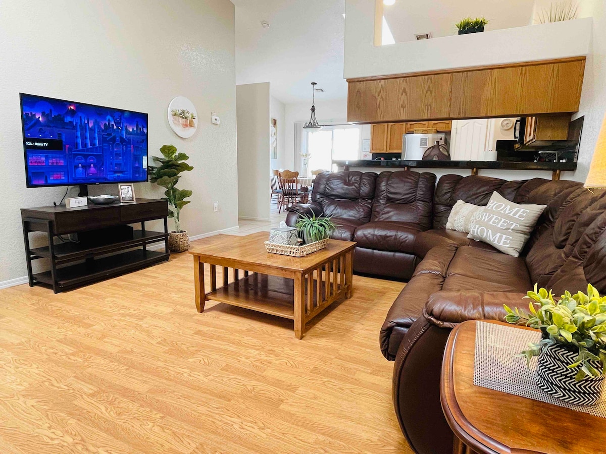 Escape to relaxation in this spacious, serene retreat—perfect for business or leisure. Enjoy time with family, friends, or colleagues in this ideally located home. With brand-new Samsung smart appliances, a heated pool, an arcade game, a grill/smoker, and games for all ages, you’ll have everything you need for fun. Ample parking, including space for an RV, adds extra convenience. Whether soaking up the sun or unwinding in the cool, AC comfort inside, we’re sure you'll have a delightful stay.