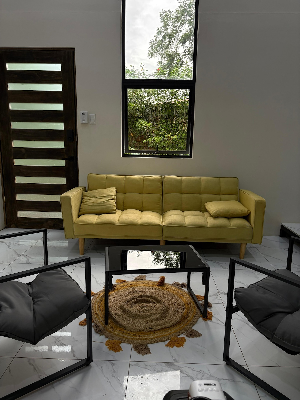 Un hospedaje para escapar de la rutina y conectar con la naturaleza, tiene un diseño moderno con una cálida decoración, rodeado de naturaleza donde podrás observar muchas aves, una linda vista al volcán, balcón, terraza, una refrescante piscina y jacuzzi privado. Un lugar ideal para parejas, amigos o para que puedas teletrabajar tranquilamente. Ubicados estratégicamente cerca de todas las actividades principales y a tan solo 2.5 km del centro de La Fortuna y a 1 km de La catarata La Fortuna.