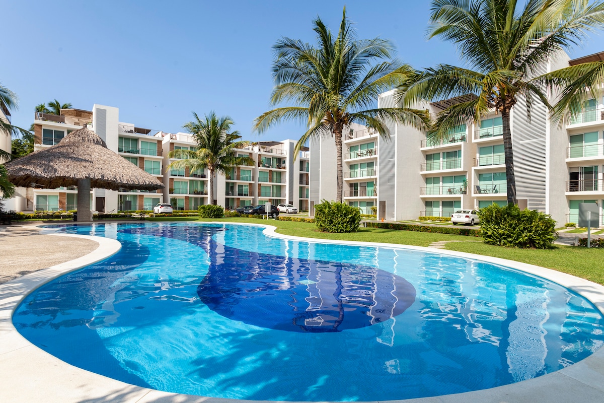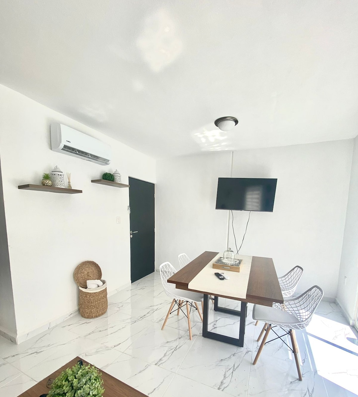 Escape to Marina Diamante on the ground floor (sleeps 4) with a private garden jacuzzi to unwind anytime. Pool, 24/7 security, and 2 parking spots. 2 bedrooms and 2 full baths. A/C in each bedroom and the living area; TV in each bedroom + a 65" TV in the living room. 100 Mbps Wi-Fi, equipped kitchen, washer, and workspace. Private access to Laguna de Tres Palos. Pets welcome (please ask before booking).