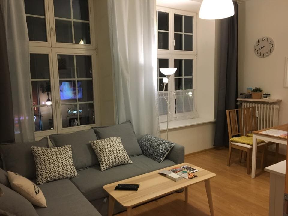 Enjoy easy access to everything from this perfectly located home base. Right in center of Gdansk with lots of beautiful places to explore Fully fitted kitchen, twin beds that can be converted to double bed, cozy shower and everything to make it a great place for work or holiday. There is also a small sofa that can be converted into bed of 100x179cm which is enough for two kids or an adult The flat can accommodate small family of 4 as long as guests don’t mind sleeping in one room.