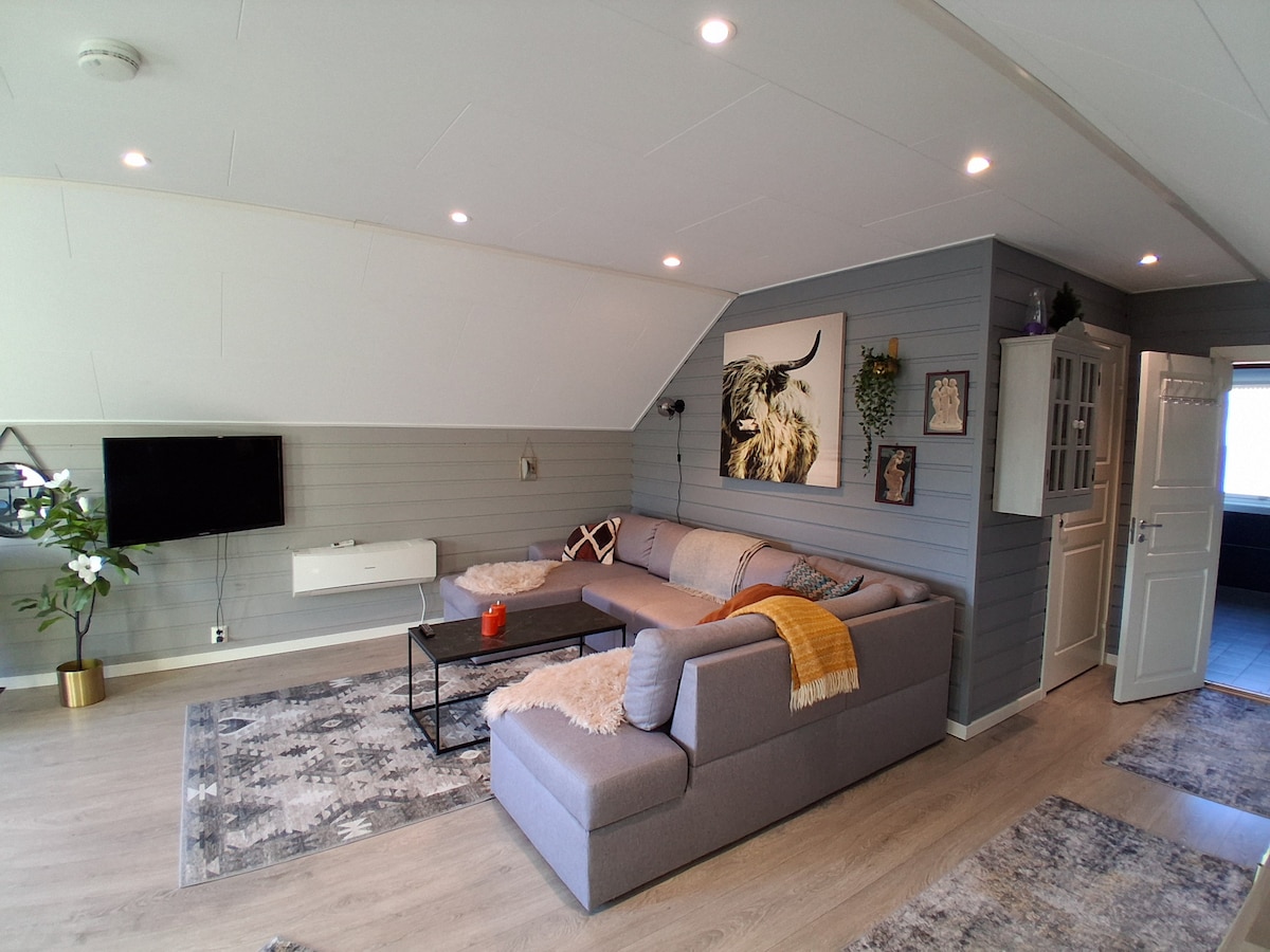 God plass til parkering. God plass for mc. Ta deg en pause og slapp av i fredelige omgivelser på toppen av vår garasje i egen koselig loftleilighet. Lofteiligheten ligger bak huset. Følg veien fordi huset så ser du garasjen. Dobbeltseng på soverommet. Stor sofa/sovesofa på stue. Ett hav av turmuligheter. Her kan du nyte naturen. Kort vei til nærbutikk,kafé, strand og andre bademuligheter. (ferskvann) Offentlig transport forbi leilighet forekommer skjeldent til aldri.