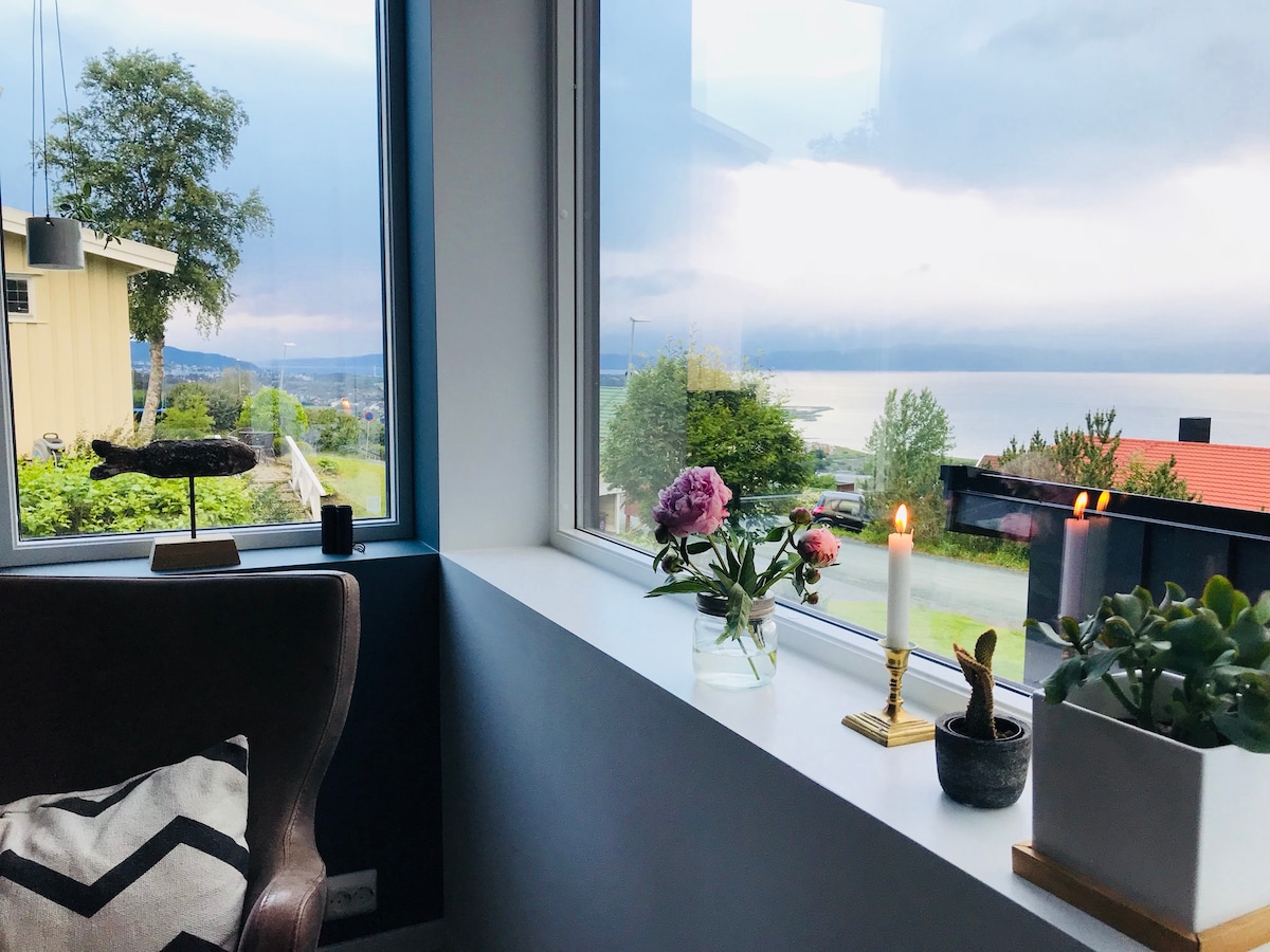 Moderne, koselig leilighet med vakker utsikt. Boligen ligger 7 min med bil nord for Trondheim sentrum, i et rolig og trygt område nært skog, vann og sjø. Nærmeste butikk 15 min gange. Komme seg rundt: 3 minutt gange til nærmeste bussholdeplass. Buss nr.7 tar deg til sentrum ca hvert 10 minutt morgen og ettermiddag. På kvelden ca.hvert 30 minutt. Flybuss: 10 minutt gange til flybussen -Værnes. Kontakt for gjester: Jeg er tilgjengelig på telefonen og Behjelpelig med det meste, Øvrig familie vil kunne hjelpe ved behov.