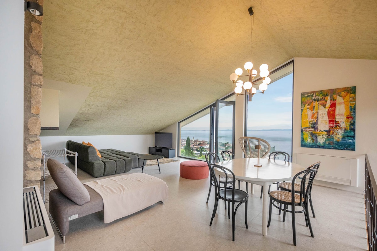 All'interno di Casa Carlottina, un moderno attico dal sapore romantico. Lo divide dalla passeggiata del lungo lago e delle caratteristiche viuzze gardesane solo l'antica scala d'accesso alla residenza. Previa disponibilità, possibilità di prenotazione di due appartamenti comunicanti, fino a 11 posti letto. Strategica posizione per visitare il Lago di Garda e le sue attrazioni come Gardaland, Caneva e Movieland. Possibilità di parcheggio a pagamento.