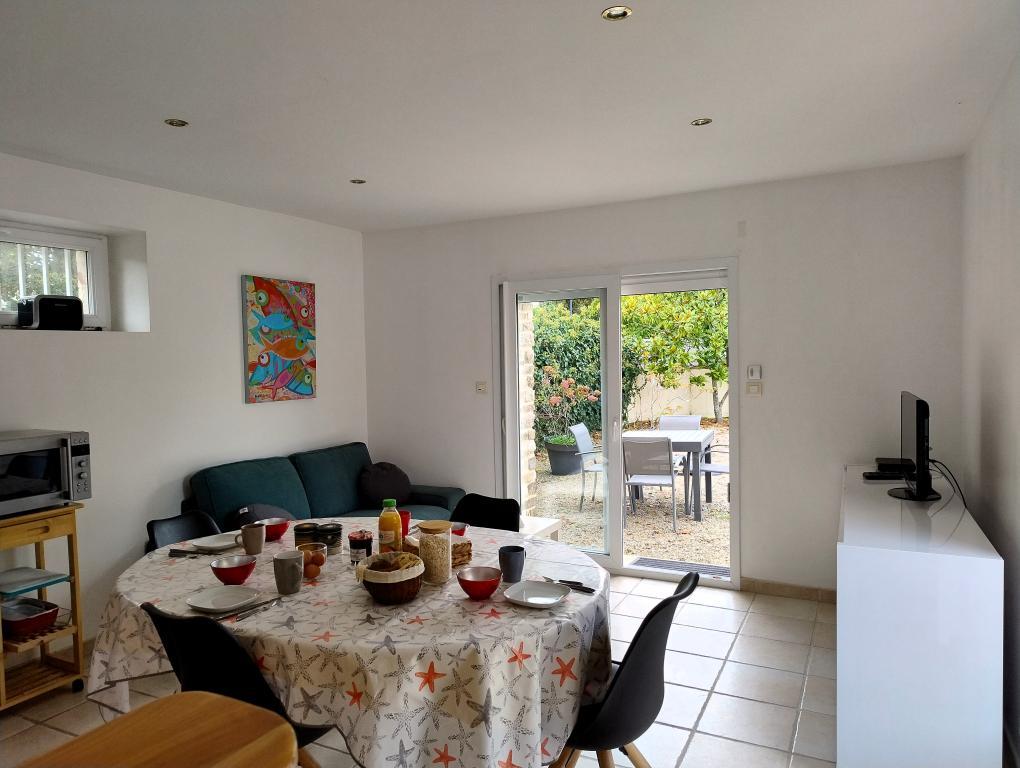 Maison entièrement rénovée, classée 3 étoiles , équipée à neuf , avec jardin clos, située dans un quartier calme, à 10 minutes à pieds de la plage , la thalasso, le casino, d'un supermarché, des restaurants et magasins, boulangeries etc . Pour un séjour de 2 nuits minimum SAUF VACANCES SCOLAIRES POUR 7 NUITS MiNiMUM JUILLET ET AOÛT . Une chambre spacieuse Lit 160x200 avec commode et grand placard, une 2ème chambre avec 2 lits 90x190 et armoire penderie, grande pièce de vie avec cuisine ouverte.