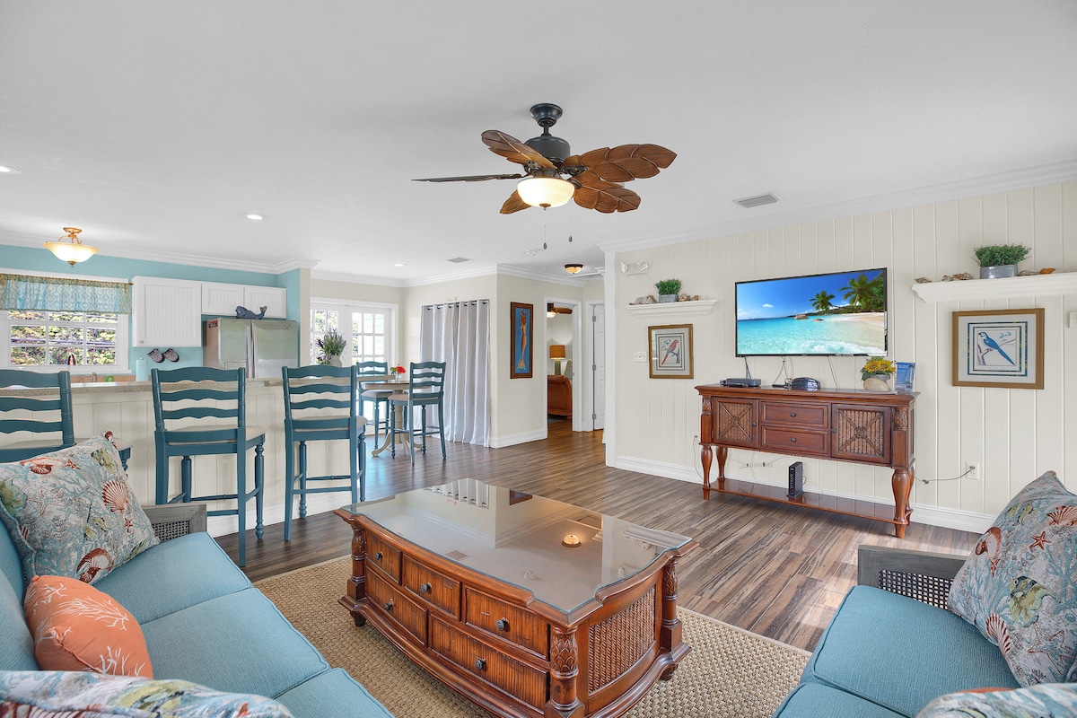 A perfect tropical getaway! Life is good today! Bright, airy, 500 plus sq ft., canal front studio, close to the bay. From the dock you can KAYAK to mangrove tunnels, fish, or just relax. Cold drink in your hand, life is good today! You are going to have an awesome vacation!! ( NOTE: THE POOL MAY BE SHARED ON OCCASION, WITH OUR FAMILY. A SIGNED LIABILITY RELEASE IS REQUIRED AT CHECK IN )