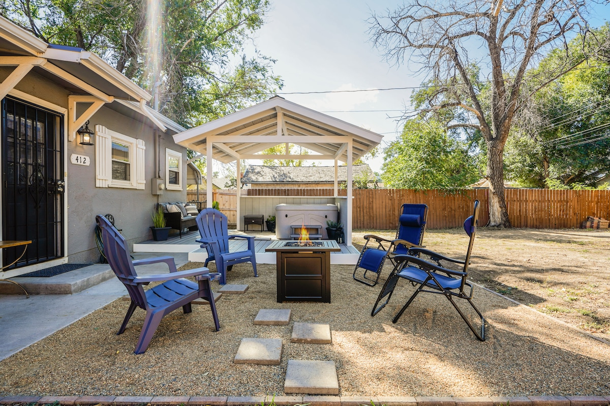 ★5 Star cleaning team trained in disinfecting + sanitation ★2 blocks to downtown & to local coffee ★Short drive to CO College, Garden of the Gods, Pikes Peak, USAFA ★Fenced in yard w/FIREPIT, HOT TUB & GRILL ★Smart TVs in living room & both bedrooms w/Hulu & Netflix ★BRAND NEW★ comfortable beds! ★Equipped kitchen ★FAMILY FRIENDLY: Pack n play, baby bath, high chair, baby moniters + more! ★BUSINESS: FAST WIFI, KEYLESS ENTRY, charging stations & G00gle Home ★Driveway parking ★Free Colorado beer