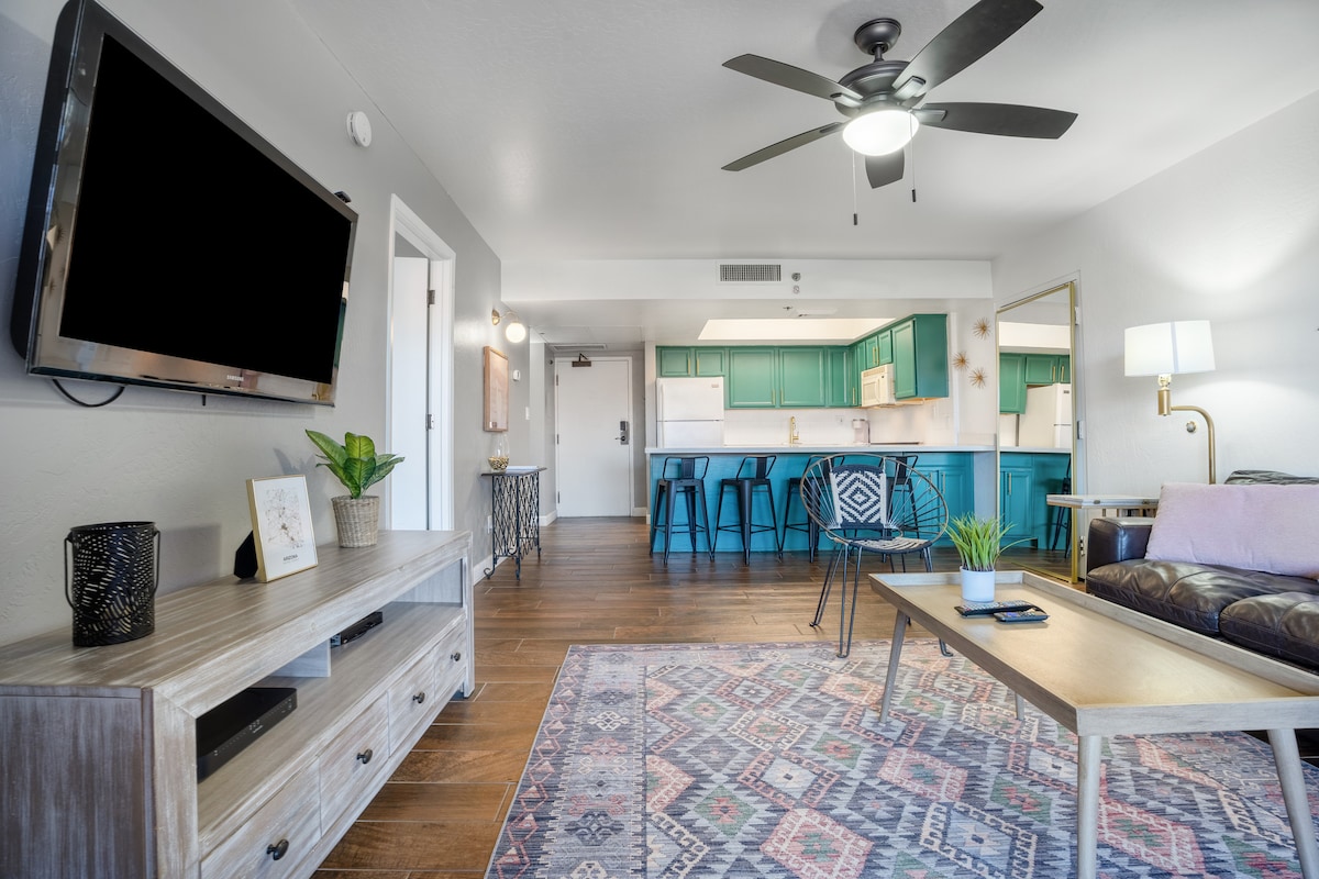 Welcome to the heart of Scottsdale, and your two bedroom luxury desert retreat. Spend your days lounging beside the heated resort pool and nights admiring the sunset from your private patio. Or take the short walk to Old Town, where dozens of art galleries, restaurants, nightclubs, and upscale boutiques await. No matter your ideal vacation, it's our pleasure to invite you to your designer condo, the perfect refuge after long days and nights enjoying everything our beautiful city offers.