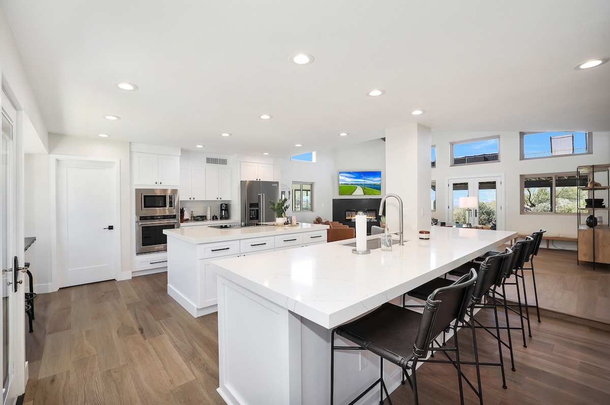 Welcome to Casa Cactus, a modern bohemian-inspired, newly constructed Villa nestled in the Tonto National Park in Scottsdale. 🌵 30 feet Saguaro -- it's right in our backyard! and estimated to be over 150 years old! ✨ Stargazing & Astronomy 🏜 Endless Mountain & Desert Landscape 🌅 Unforgettable Sunrise & Sunsets 📽 Projector & Screen for Outdoor Viewing 🔌 30 AMP Outlet for EVs & RVs 🔥 Indoor Fireplace 📺 Large Roku TV 📶 80+ Mbps WiFi 📏 2200 sqft - 4 Bedroom