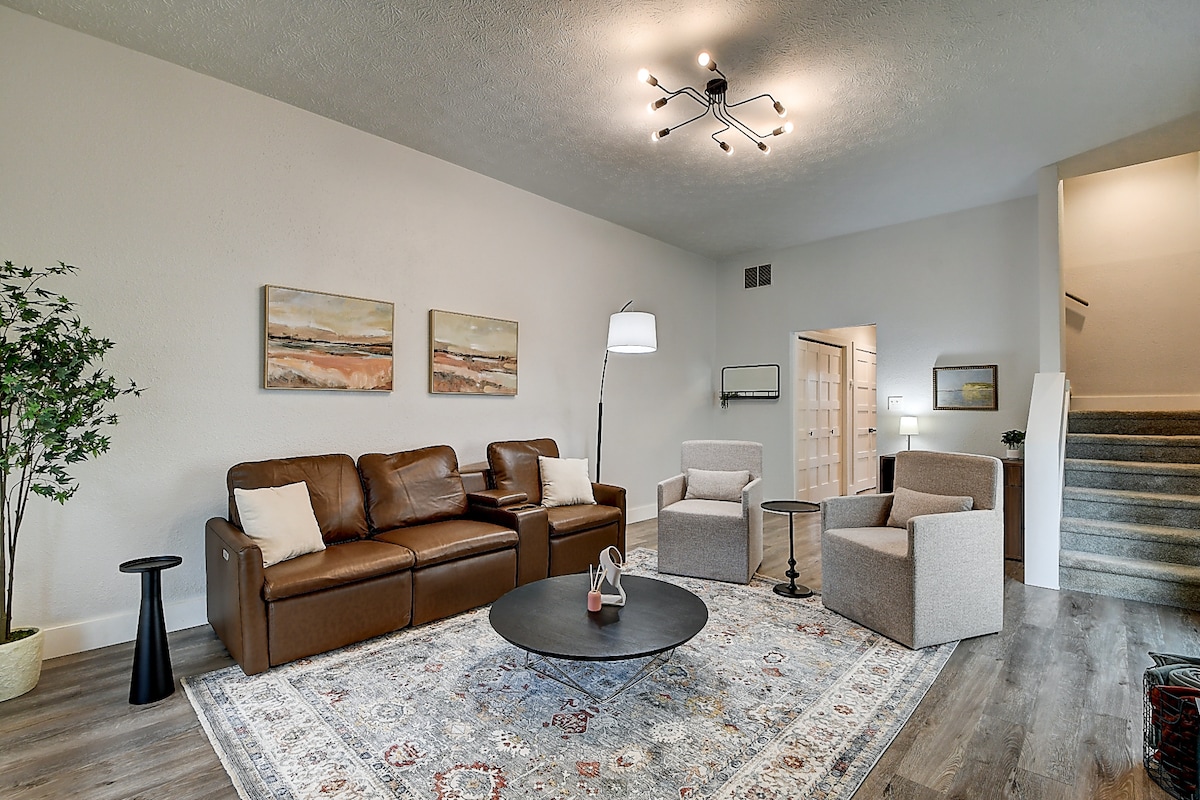 Townhome in Fountain Square Private rooftop terrace with skyline views New, spotless build with modern finishes Open living areas with bright natural light Modern kitchen: stainless steel appliances + large quartz island Washer & dryer (brand new, in-unit) Stylish, comfortable furnishings throughout Bedrooms: bright + cozy with walk-in closet Spa-like bathroom with premium fixtures Dedicated office space for remote work 2-car garage + 3-car street parking Fast Wi-Fi Smart lock entry
