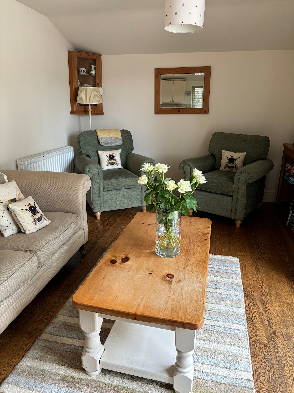 We look forward to welcoming you to our renovated Cow Byre just a short drive from Ripon. Separate to our main home, and having wonderful views, guests can visit nearby Fountains abbey, Brimham rocks, Grassington and lots of other lovely places of interest, as well as nearby walks. We have used high quality fittings throughout from Loaf seating, beautiful light fittings, Sophie Conran crockery, SMEG kettle and toaster, as well as featuring art by a local artist David Stead.