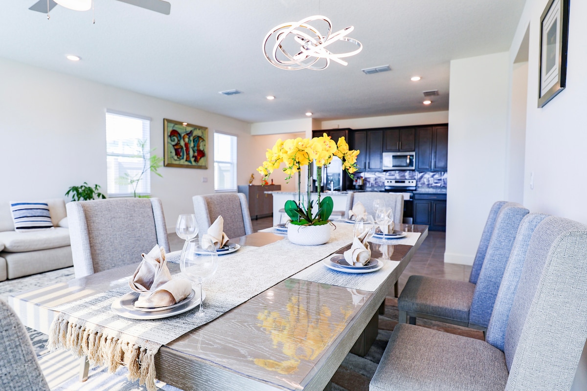"Welcome to our modern haven, a family-friendly retreat near Disney World! This stylish home is designed for your comfort and convenience. With spacious rooms, contemporary amenities, and a touch of magic, it's the perfect base for your enchanting vacation. Explore the wonders of Disney by day and unwind in our cozy space by night. Make memories that last a lifetime in this perfect blend of style and family-friendly charm!"