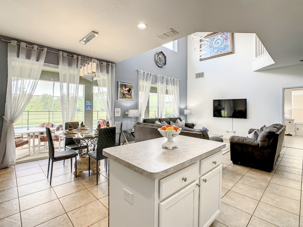 This Villa is located 5 to 30 mins to ALL Major Orlando Theme Parks. 3B/2B w/ balcony that overlooks the heated pool, hot tub and tennis courts. Relax while the children enjoy the arcade in the family room. Tennis rackets/balls & pool toys provided. Family friendly and stocked kitchen with waffle iron (some mix/syrup), toaster, pots and pans, spices. Baby gear is included. Plenty of space for 2 families. Netflix & High speed internet. Gym, gazebo & grills right next to your unit.