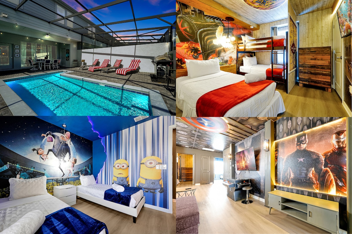 6卧室,靠近迪士尼|泳池电影之夜+主题房