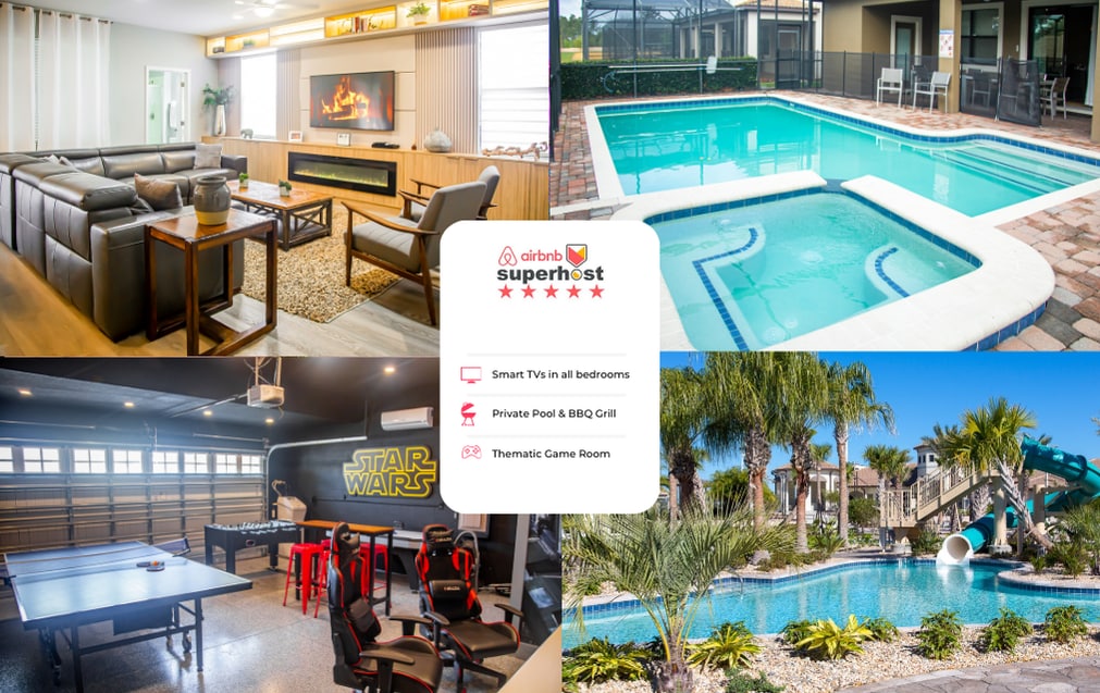 Amazing Brand New Modern Luxurious Home at Encore Resort @ Reunion. PET-FRIENDLY & Minutes to all Theme Parks. BRAND NEW HOME. Private Pool & Spa / Game Room / Movie Theater / Gym / Massage Chair / Fireplace / PS5 / Board Games & Much Much More Embrace the extraordinary and book your stay at our home, where luxury, entertainment come together for an unforgettable vacation experience. ** Please review the rules before booking. Waterpark access is not included. **