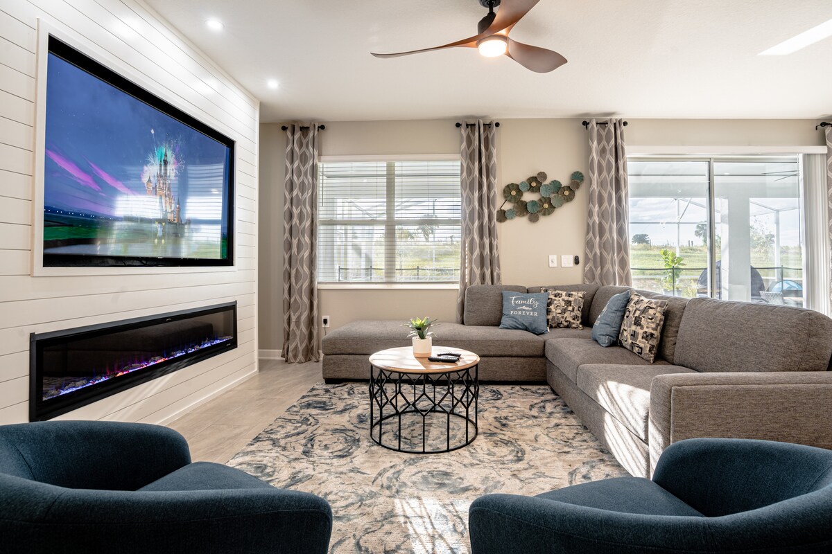 Amazing Brand New Modern Luxurious Home at Encore Resort Reunion. PET-FRIENDLY & Minutes to all Theme Parks. BRAND NEW HOME. Private Pool & Spa / Game Room / Movie Theater / Gym / Massage Chair / Fireplace / PS5 / Board Games & Much More. Embrace the extraordinary and book your stay at our home, where luxury, entertainment come together for an unforgettable vacation experience. ** Please review the rules before booking. Waterpark access is not included. **