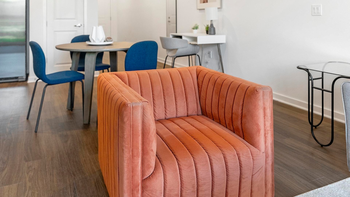 Spacious & Bright Townhome. Two Story 1,914 Square feet townhome includes 4 Bedrooms, 3 Bathrooms, a Private Swimming Pool with outdoor furniture. Enjoy the privacy of the relaxing exterior space, No neighbors view from the backyard. The ideal vacation spot for families and groups. For 10 people. Modern open floor plan, beautifully designed combination living and dining room perfect for entertaining. Fully equipped kitchen, slate appliances, quartz countertop and bar stools.