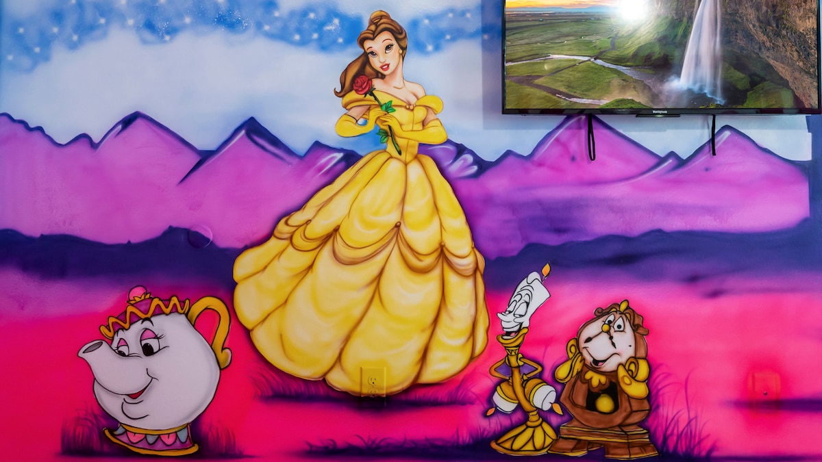 Give your family the Disney Resort experience in this magical townhome located only 10 mins (5 miles) from Disney property. Not only do you have access to your own personal hot tub, you will have access to the clubhouse which includes two pools, a fitness center, and a restaurant. This home will fit all your Disney needs with artwork from all your favorite movies, a castle themed primary bedroom, and a Mickey Mouse kids bedroom with twin beds. This home fits 6, including a pull out bed couch.