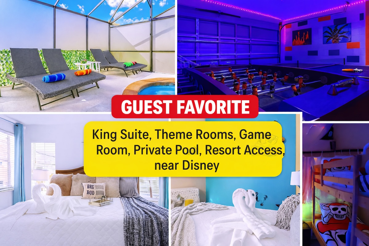 主题家庭泳池房源,10分钟到迪士尼游戏室