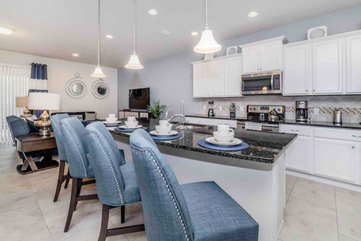 Welcome to your dream vacation villa just minutes from Disney! Nestled in the prestigious Windsor at Westside, this 6-bedroom retreat is perfect for families and large groups. Enjoy a private southwest-facing pool, barbecue grill, and fully equipped kitchen. Kids will love the Minions and Mickey-themed bedrooms, while everyone can unwind with the PlayStation 5 and smart TVs. Close to Orlando’s top restaurants, shops, and attractions, this home blends comfort, fun, and convenience.
