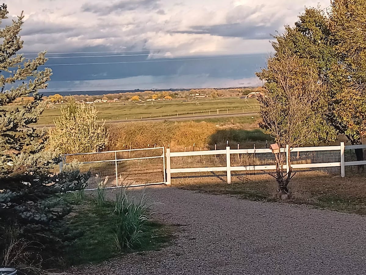 In a quiet, large-lot residential subdivision on a dead-end road with amazing views of mountains, mesas, sunsets, city lights. Rural atmosphere just 10 minutes from Dolores. Great location to "work from home." Host lives in a separate dwelling unit about 400 feet away and screened by trees, making this an ideal space for guests who prefer a private setting. Up to 2 pets are welcome; please click "Show more" below to read "other things to note" & read "Policies and Rules" before booking.