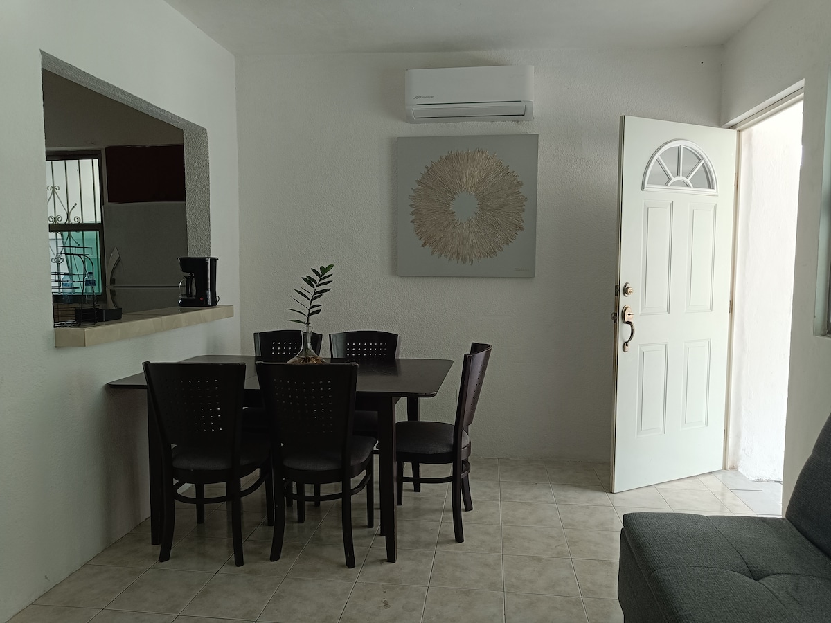 DEPARTAMENTO COMPLETAMENTE AMUEBLADO. UBICACIÓN. Céntrico, cerca de la Facultad de Medicina de la Universidad de QRoo, Unidad Deportiva del Tecnológico de Chetumal (ITCH), fármacia, Gasolinera y otros. Cuenta con: * Cama matrimonial y Hamaquero * Closet. * Parrilla para cocina de Gas. * Internet. * SmartTV de 32" * Cafetera. * Frigobar. * Meseta de cocina * Ventiladores * Aire Acondicionado. * Escritorio de trabajo * Baño con Agua fría y caliente. * Plancha. * Estacionamiento