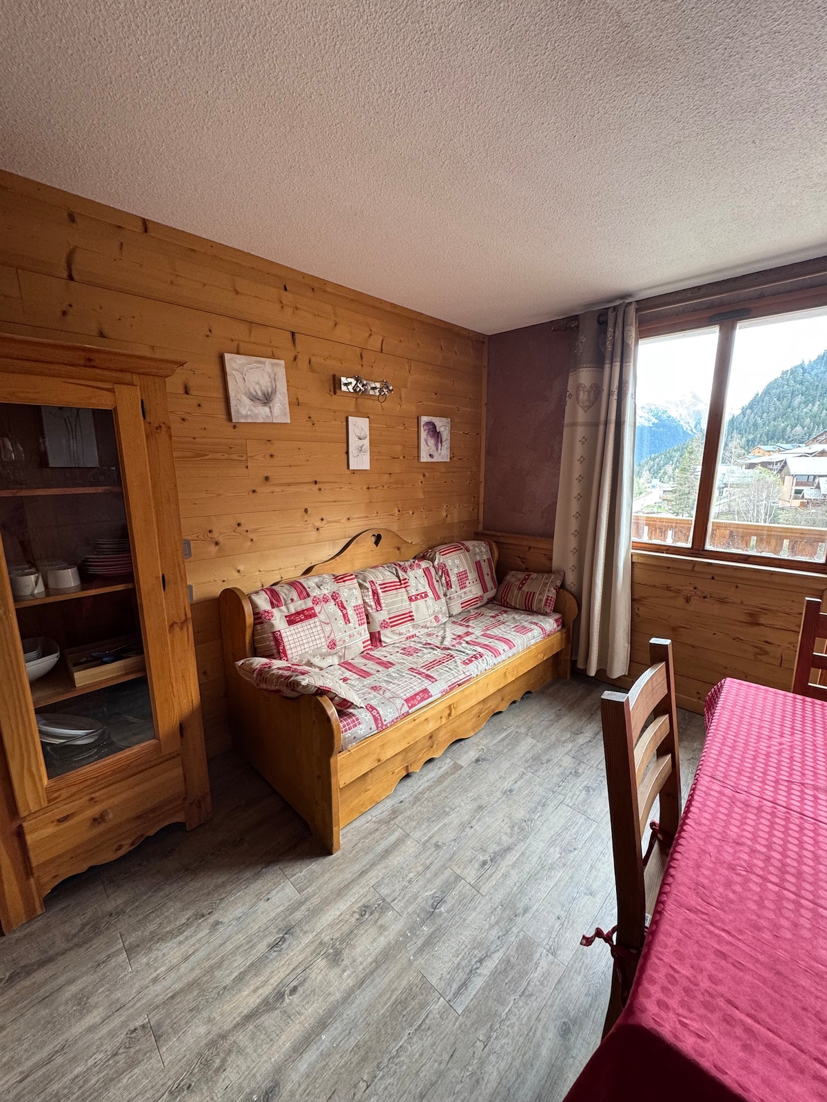 Appartement 4 personnes face aux pistes proche du centre stations, des restaurants et des commerces. 5 min a pied du bas des pistes. Situé au premier étage d'une résidence calme. L'appartement est équipé d'une kitchenette avec plaque de cuisson (vitrocéramique), lave linge, four micro onde et convection grill. TV, wifi. Une chambre avec lit double et un BZ convertible dans le coin séjour. Un casier à ski se trouve au deuxième étage de la résidence.