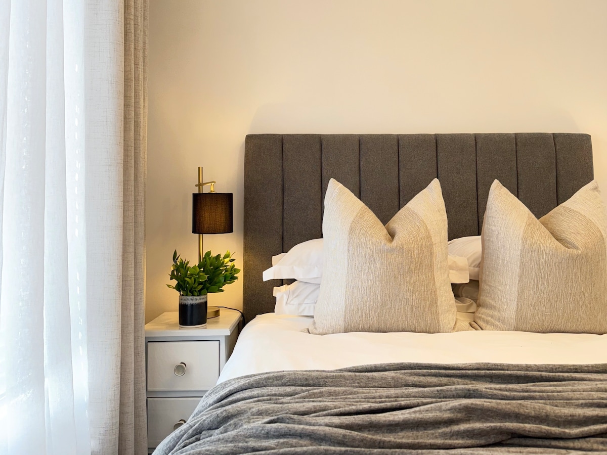 Welcome to your serene city escape!This beautifully designed 2 bedroom ground-floor apartment offers comfort, elegance & convenience.The master bedroom features a queen bed, and the guest bedroom has a double bed,both with plush linens & electric blankets.The modern bathroom boasts a spacious shower and a relaxing tub.Enjoy the fully equipped kitchen and stylish open-plan living, adorned with African-inspired art.Step outside to your private garden—a tranquil oasis for unwinding after exploring.