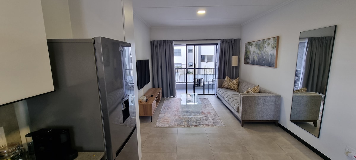 We welcome you to relax in our calm and luxurious space situated in a quiet section of Fourways. The apartment is uniquely and tastefully designed with amenities that radiate style and comfort. Treat yourself to this stunning apartment with a queen size bed, a fully equipped kitchen and a modern bathroom. Unwind on the patio or on the couch and enjoy a TV with Netflix and Youtube. The apartment has electricity backup that runs the TV and the Wi-Fi. Book your stay today and indulge in luxury.