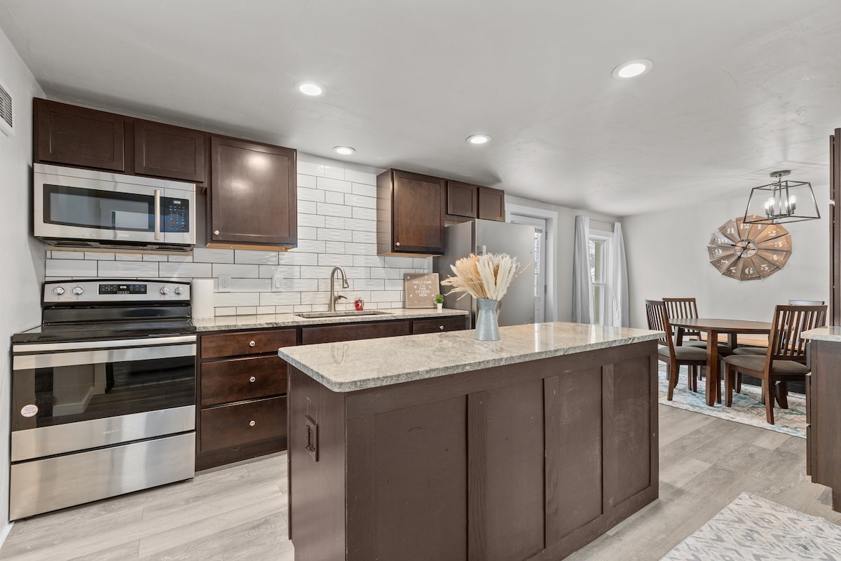 Escape to our stylish, art-themed home in a quiet Appleton neighborhood just minutes a few minutes walk to downtown! This newly remodeled house is perfect for families or remote workers. Enjoy a dedicated workspace, a fun playroom, and a private patio. You're just a 10-minute walk from downtown College Avenue, Lawrence University, Mile of Music and the Performing Arts Center. Fully remodeled Only 35 minutes to Lambeau Field. A serene and central retreat awaits!