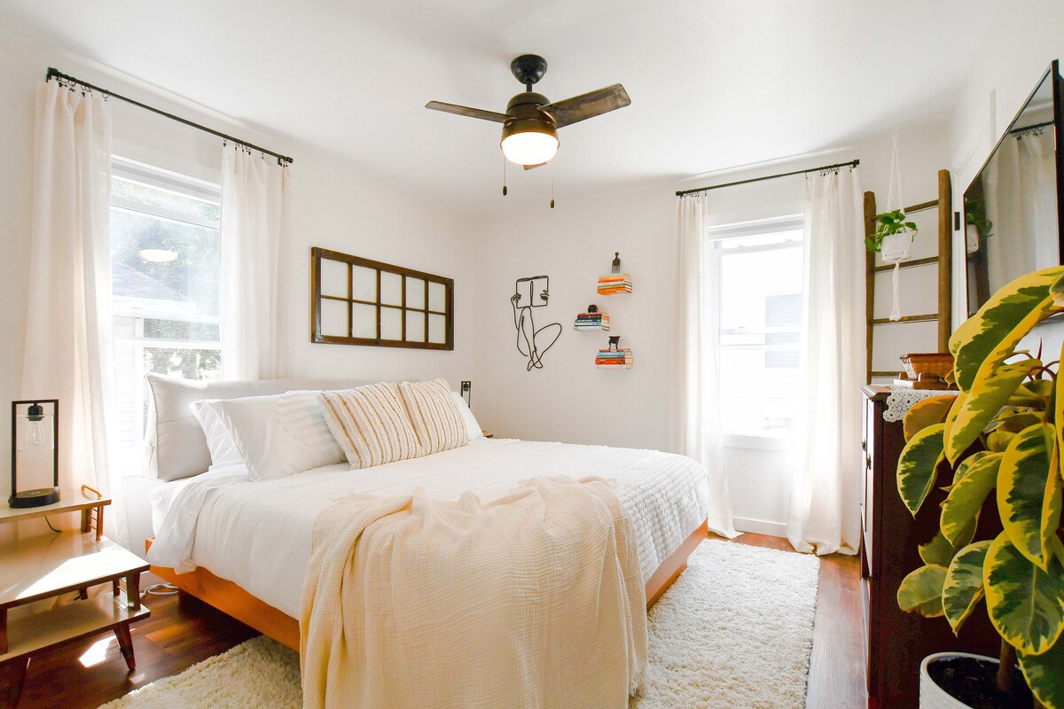 Welcome to The Blue Bungalow! Located in the heart of downtown Appleton and close to Lawrence University, our home welcomes you with 3 bedrooms (king + queen + twin beds), modern furnishings, a fully stocked kitchen, huge bathroom, gas grill and outdoor patio area. The cozy living room has a comfortable couch, decorative fireplace, and large TV. Our neighborhood is quiet, walkable and just minutes from everything in Appleton and only 30 minutes to Green Bay and 20 minutes to Oshkosh.