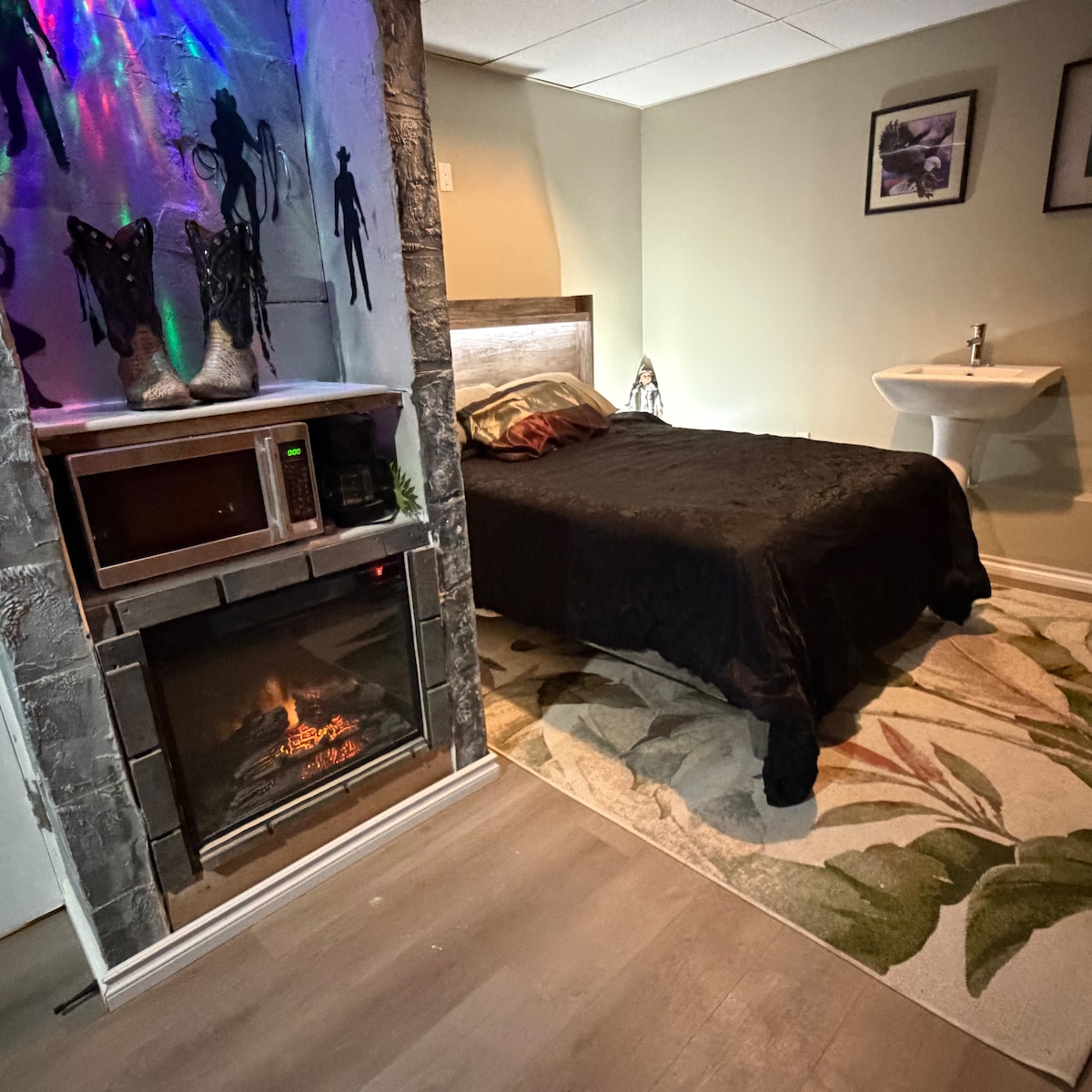 Don’t waste your money at a dingy, dumpy hotel in Fox Creek .This theme room is perfect for out-of-town workers in the oilfield to want to have a fun room while away from home. Perfect for workers on shift rotation that want to save their LOA money ! My crew house offers a quiet, clean, comfy, quiet environment, where workers feel all the comforts of home . Very spacious room with two beds, large TV and its own private entrance & who is private bathroom.. plenty of parking!
