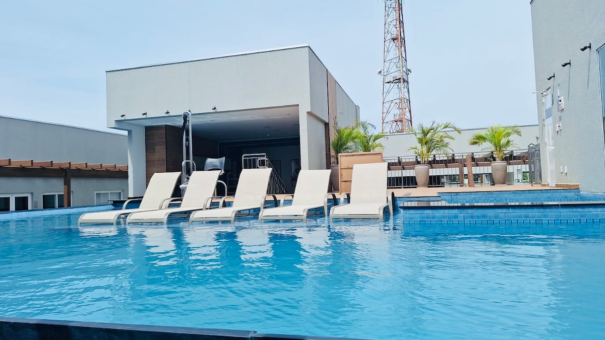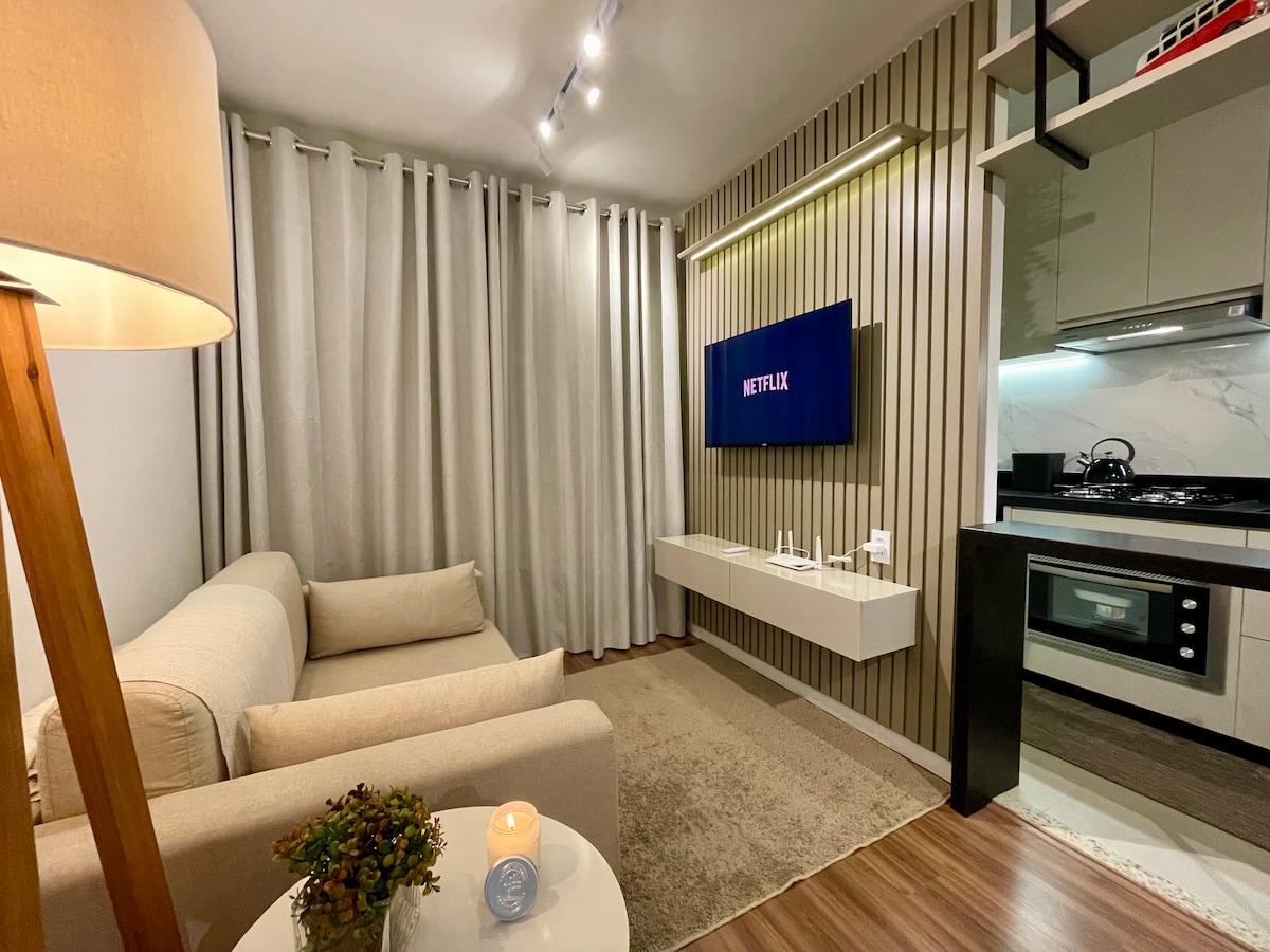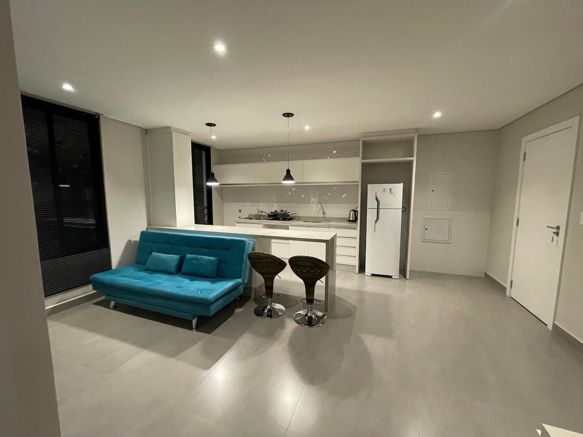 O apartamento é novo, moderno e conta com garagem privativa, oferecendo conforto e praticidade no centro da cidade. Com um quarto aconchegante, sala com sofá-cama, cozinha equipada e ar-condicionado quente e frio, é ideal para qualquer ocasião. E a localização privilegiada coloca você ao lado de farmácias, restaurantes e padaria. O prédio conta com portaria 24 horas e com estrutura completa, incluindo coworking, lavanderia, piscina, salão de jogos e academia. Perfeito para o turismo ou trabalho.
